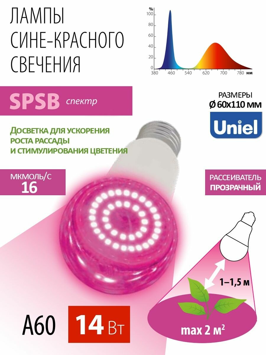 Лампы для растений Uniel LED-A60-14W/SPSB/E27/CL PLP30WH, цена за 1 шт интересное: