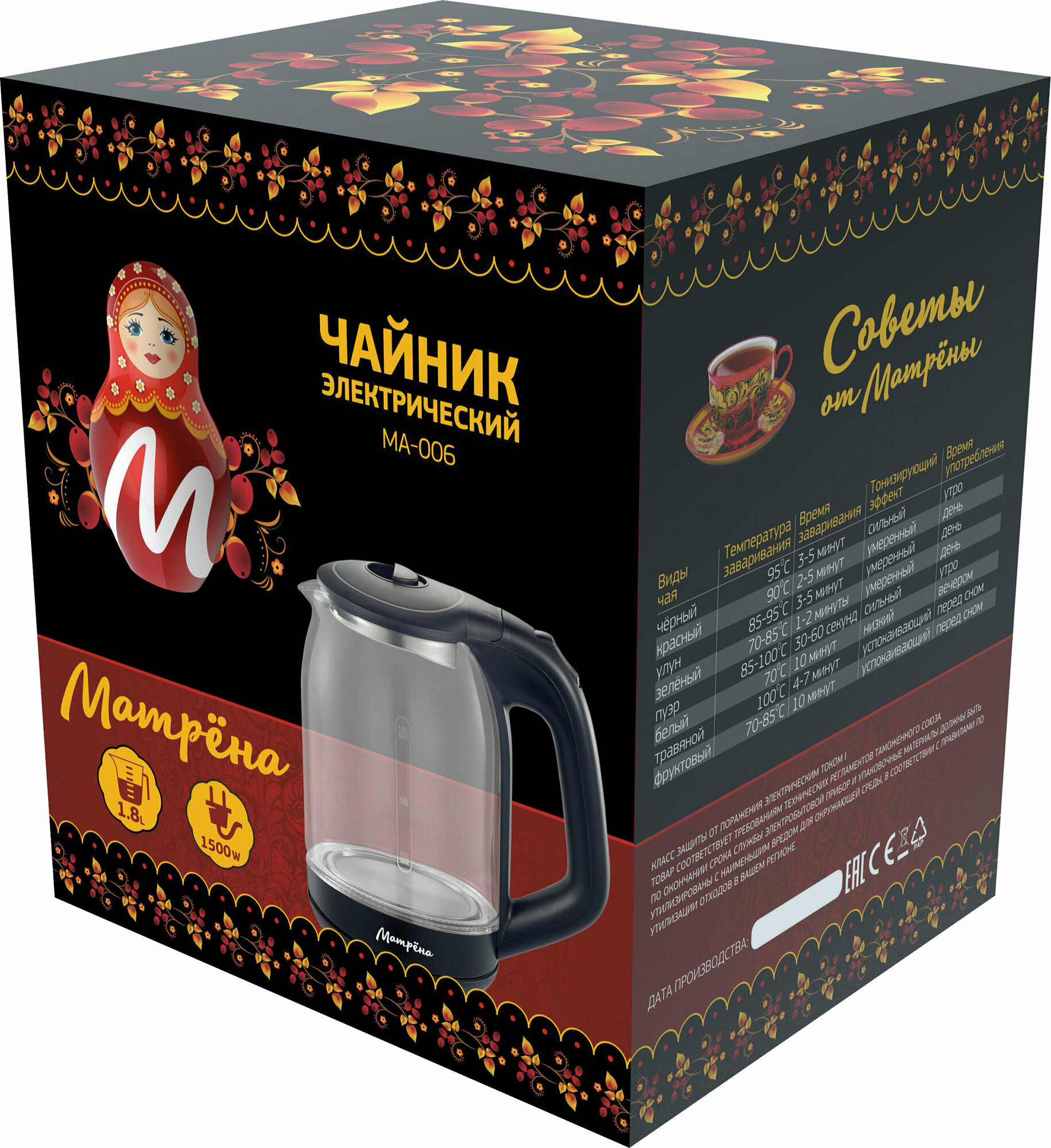 Электрический чайник матрёна MA-006 1,8л черный