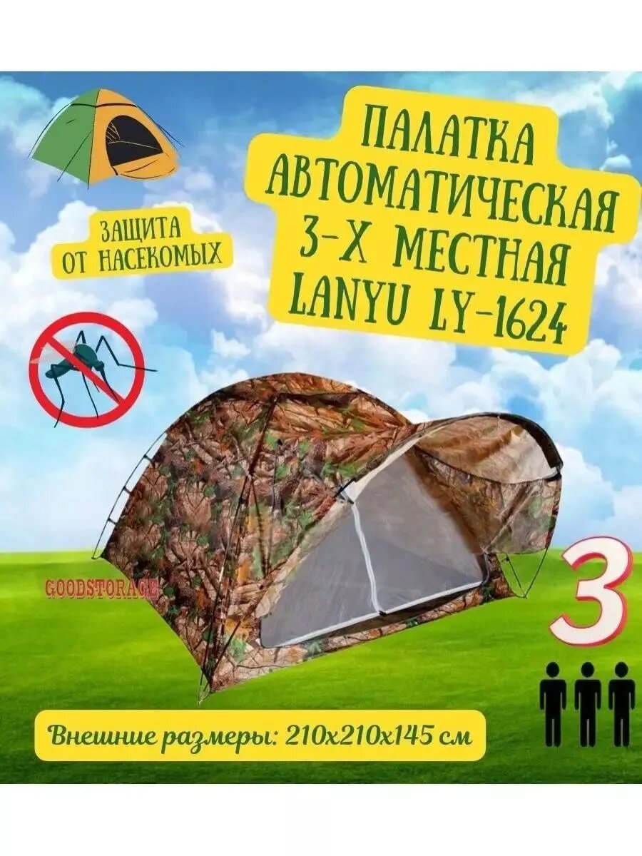 Палатка кемпинговая трехместный LANYU LY-1624 милитари /Палатка / Туристическая / Для туризма / Однослойная / С тамбуром / Палатка / Кемпинг / Рыбалка интересное: