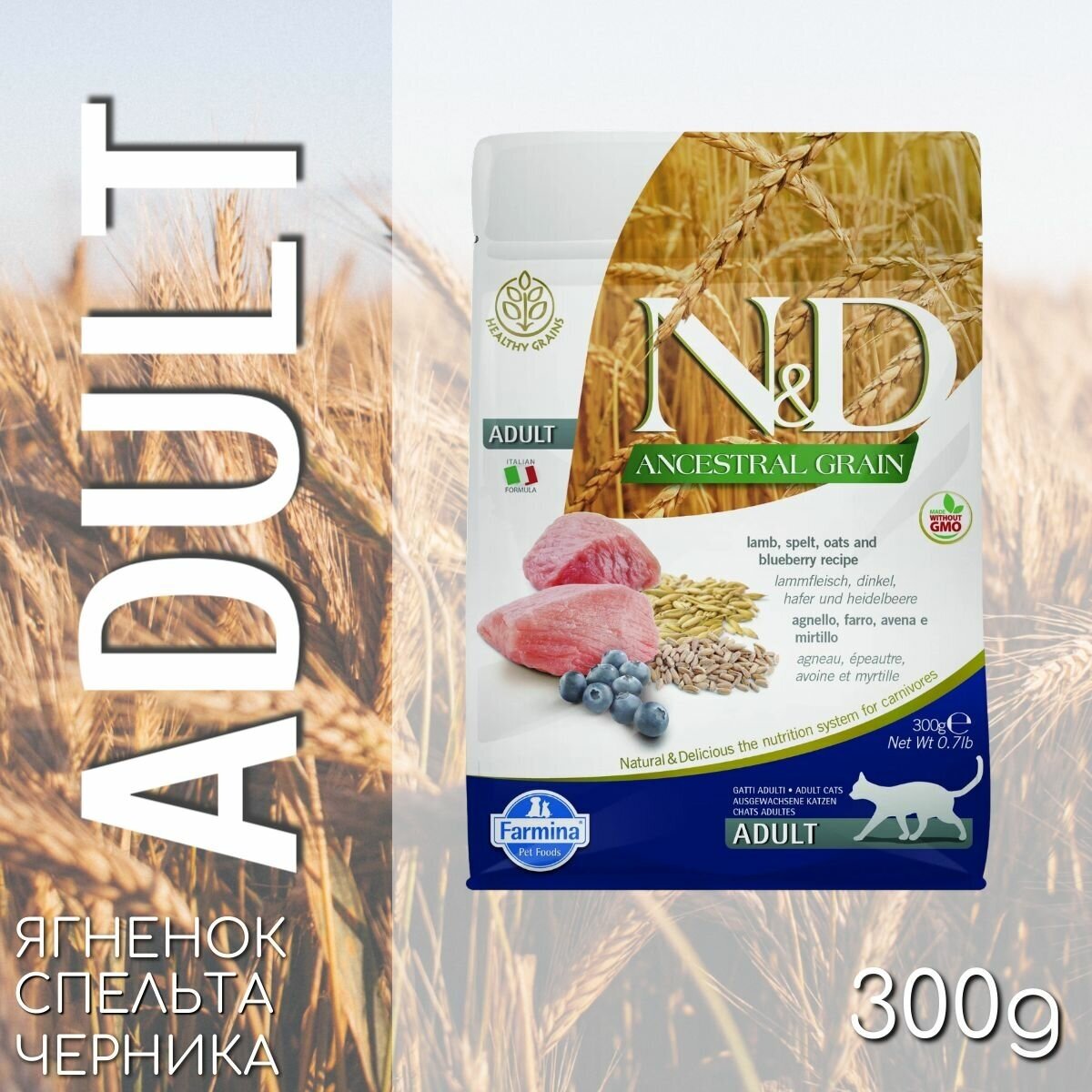 Farmina Н&Д Лоу Грейн Кэт Эдалт ягненок, спельта, овес, черника 0,3кг/N&D Ancestral Grain Cat Lamb, Spelt, Oats and Blueberry Adult 0.3kg