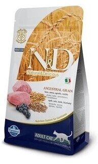 Корм сухой Farmina N&D ANCESTRAL GRAIN CAT, для взрослых кошек, ягненок, спельта, овес и черника, 1.5 кг