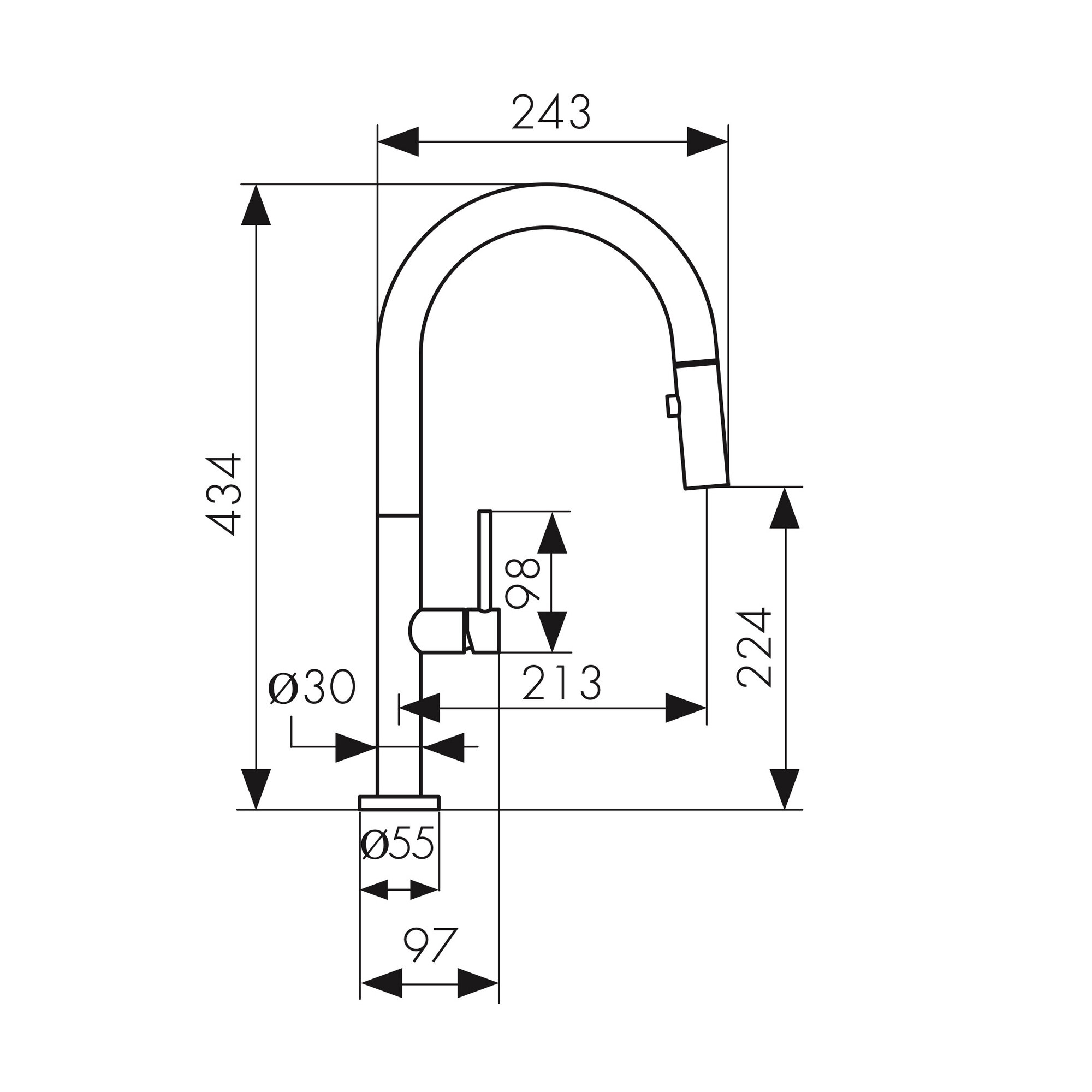 Смеситель для кухни с выдвижной лейкой KAISER Merkur 26466-15 цвет черный матовый