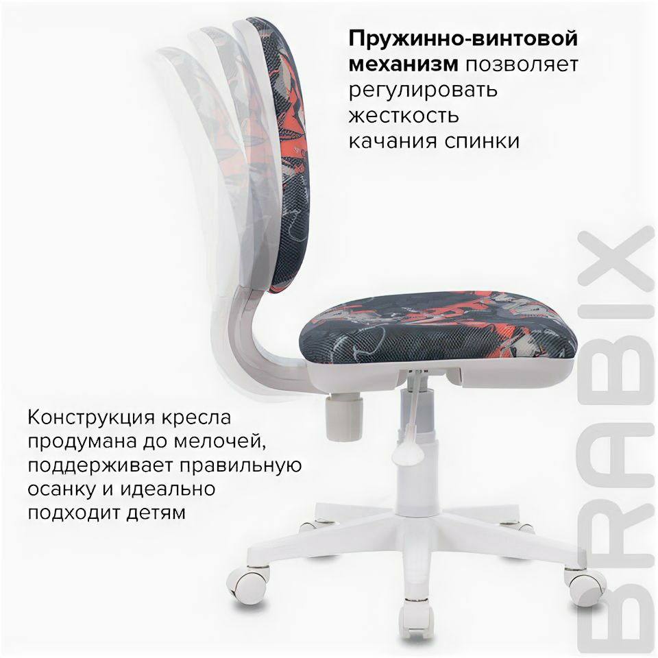 Кресло детское BRABIX "Fancy MG-201W", без подлокотников, пластик белый, с рисунком "Graffity", 532415, MG-201W_532415