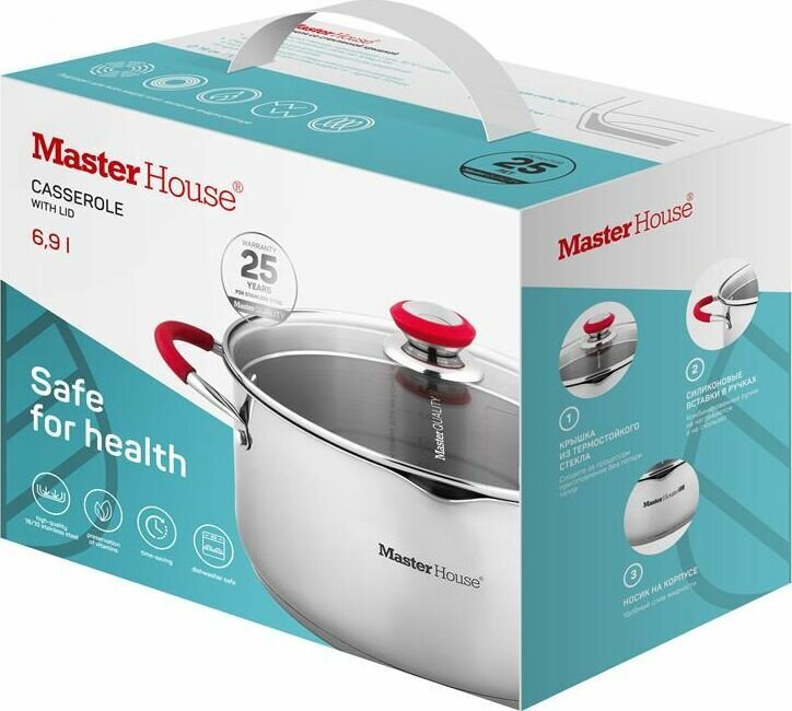 Кастрюля MASTER HOUSE Rosse-5,0 со стеклянной крышкой 60482