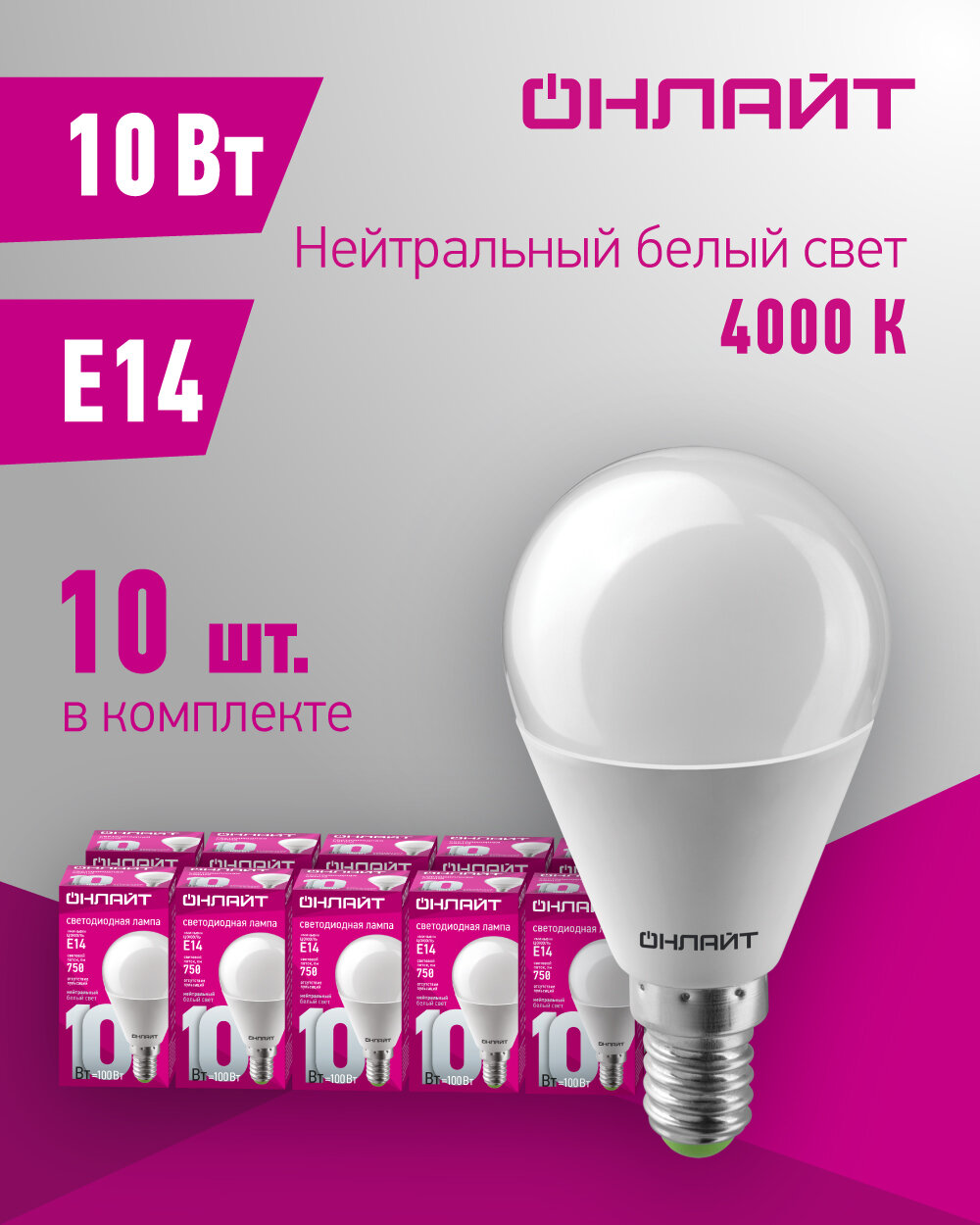 Лампа светодиодная онлайт 61 966, 10 Вт, шар Е14, дневной свет 4000К, упаковка 10 шт. интересное: