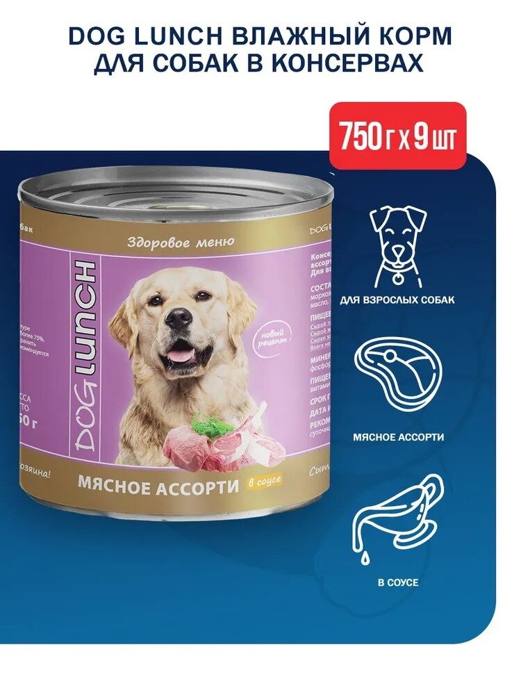 Dog Lunch консервы для собак Мясное ассорти в соусе 750г х6шт
