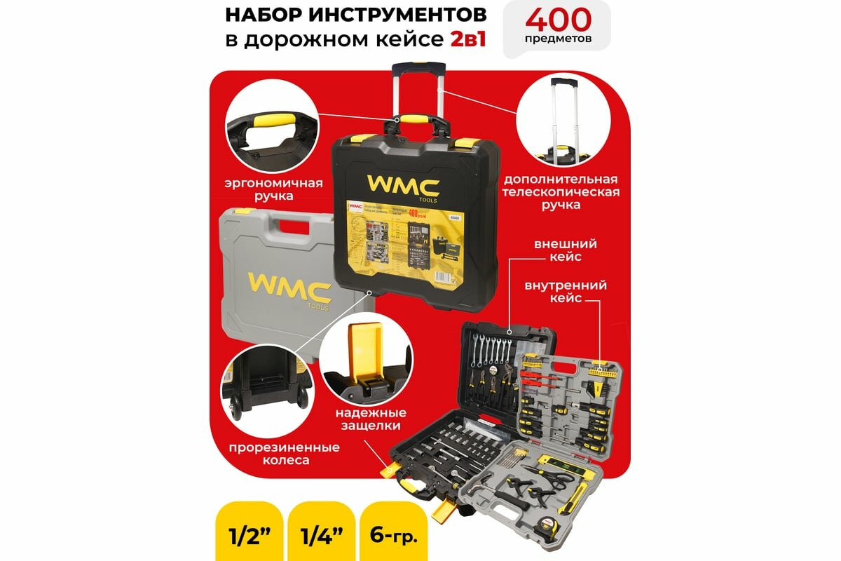 WMC TOOLS Набор инструментов 400 пр,1/4, 1/2 6гр. 4-22мм.дорожный кейс 40400