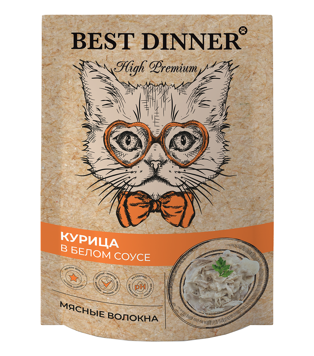 Купить Влажный корм Best Dinner High Premium для котят с 6 месяцев и взрослых кошек, курица в белом соусе, пауч, 85 гр