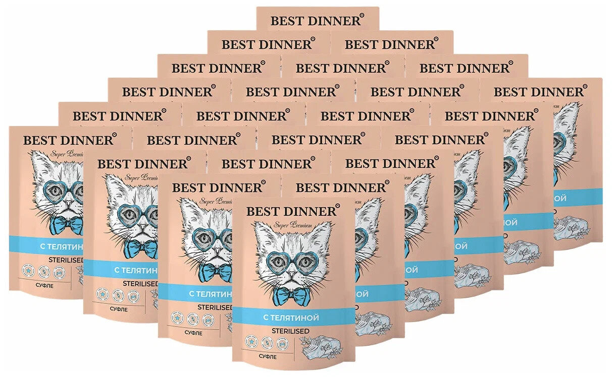 Купить Влажный корм для кошек Best Dinner Бест Диннер Паучи Мясные деликатесы Sterilised /Суфле С Телятиной/ 85 г х 24 шт.