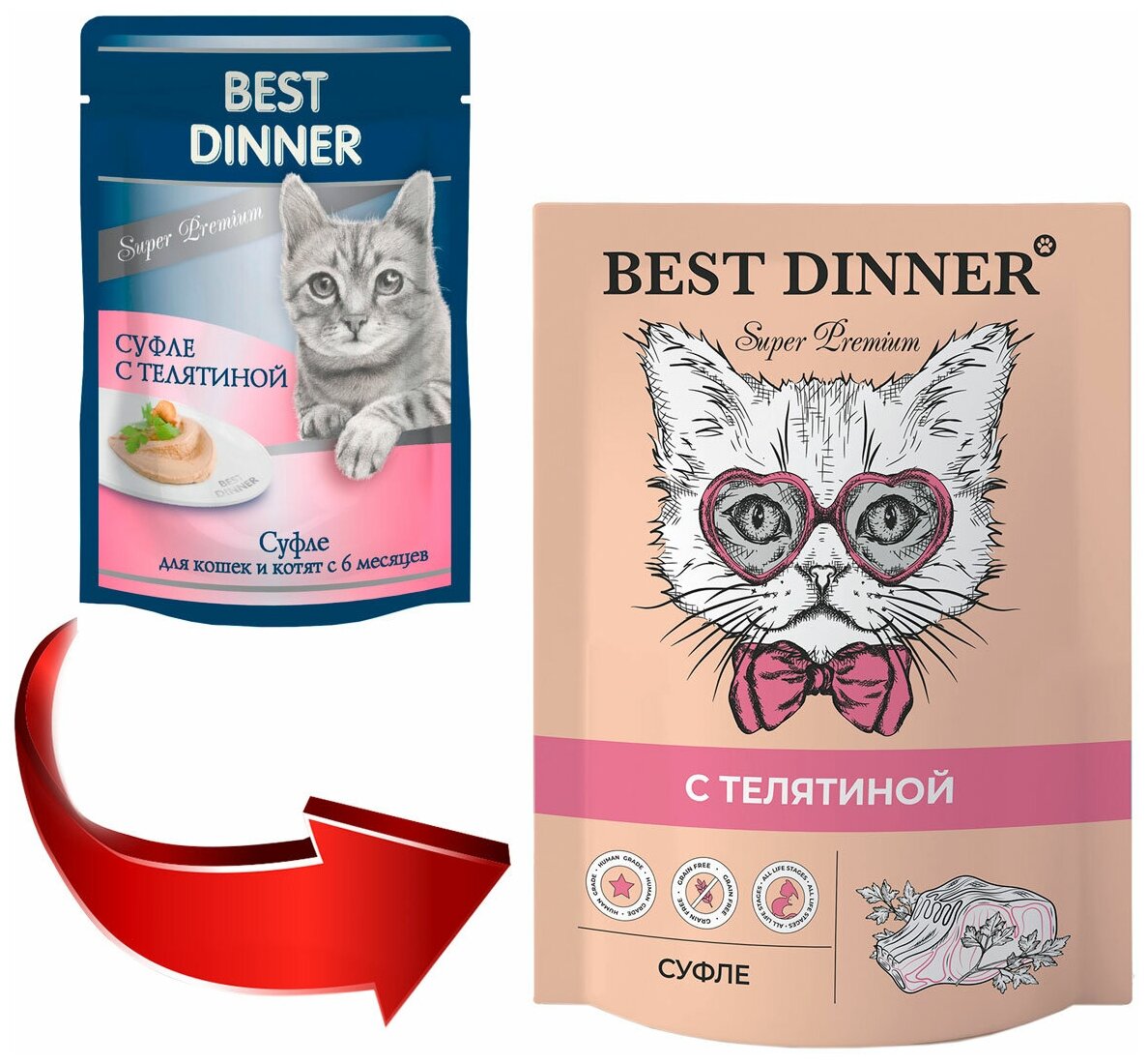 Упаковка паучей BEST DINNER стерилизованные кошек и котят Мясные деликатесы Суфле с Телятиной (85гр x 24шт)