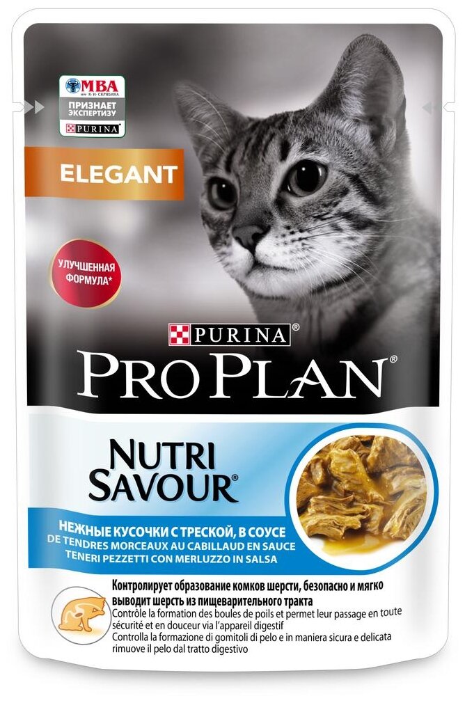 Корм для кошек PRO PLAN Elegant для здоровья кожи и шерсти, с треской в соусе пауч 85г (упаковка - 26 шт)
