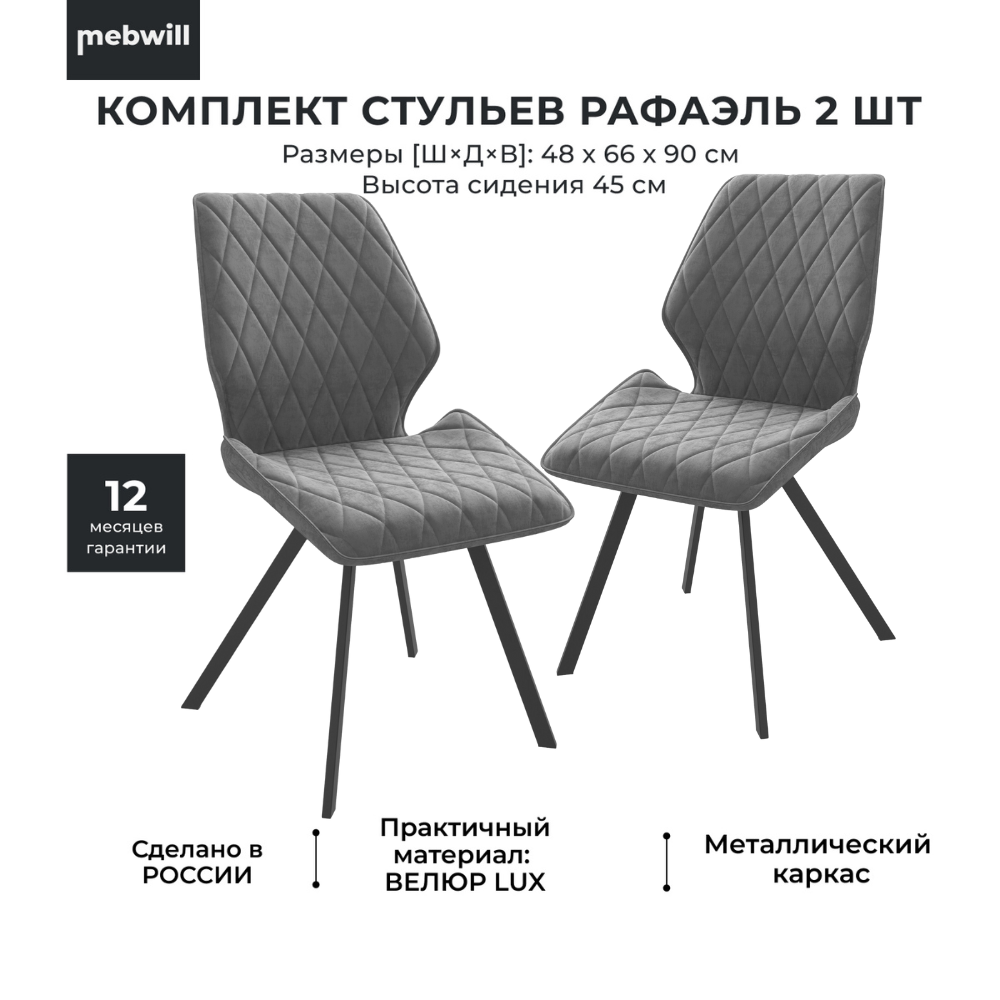 Ниже Вы можете прочитать отзывы на Комплект стульев Рафаэль металл Чёрный/ Ткань велюр GREY LUX b22, 2 шт, ознакомится с подробными характеристиками, посмотреть интересные обзоры и фотографии на Комплект стульев Рафаэль металл Чёрный/ Ткань велюр GREY LUX b22, 2 шт.