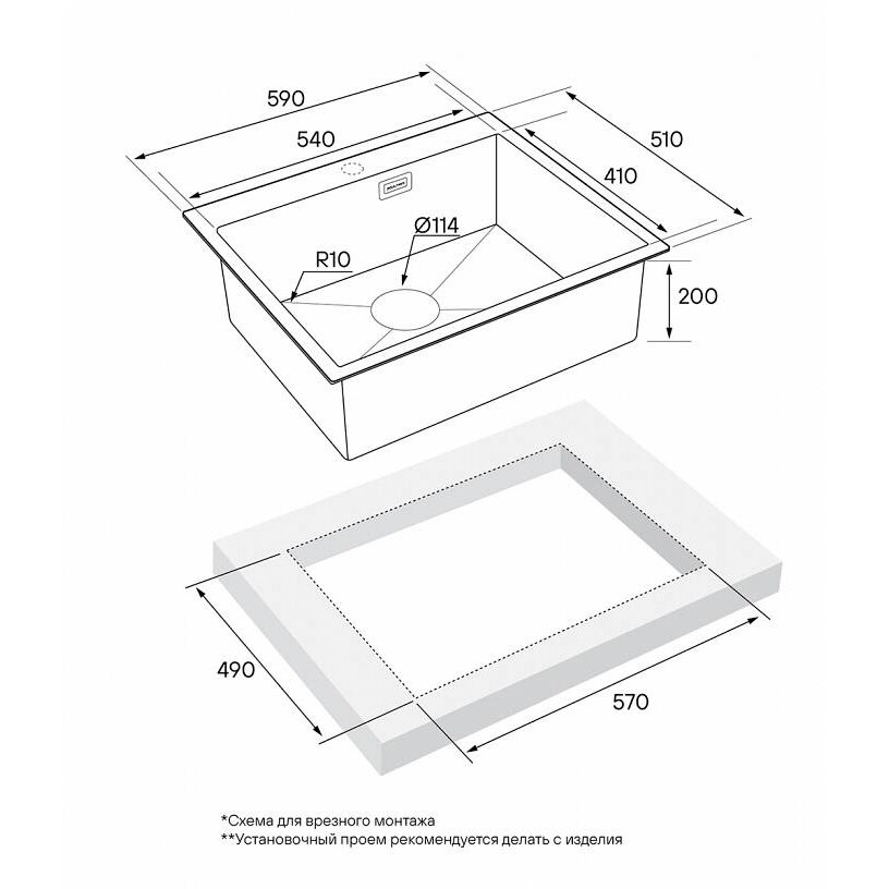 Врезная кухонная мойка LEX Maury 510