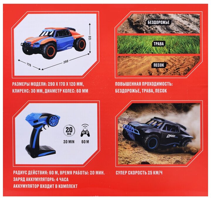 | Дополнительная информация | дорожный просвет: 3 см; диаметр колес: 6 см; привод: полны |