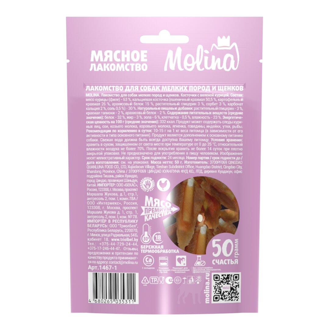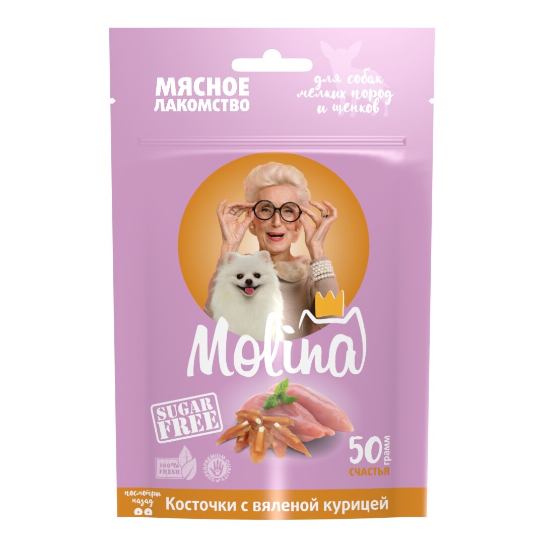 MOLINA, Лакомство для собак мелких пород и щенков, Косточки с вяленой курицей, 50 г