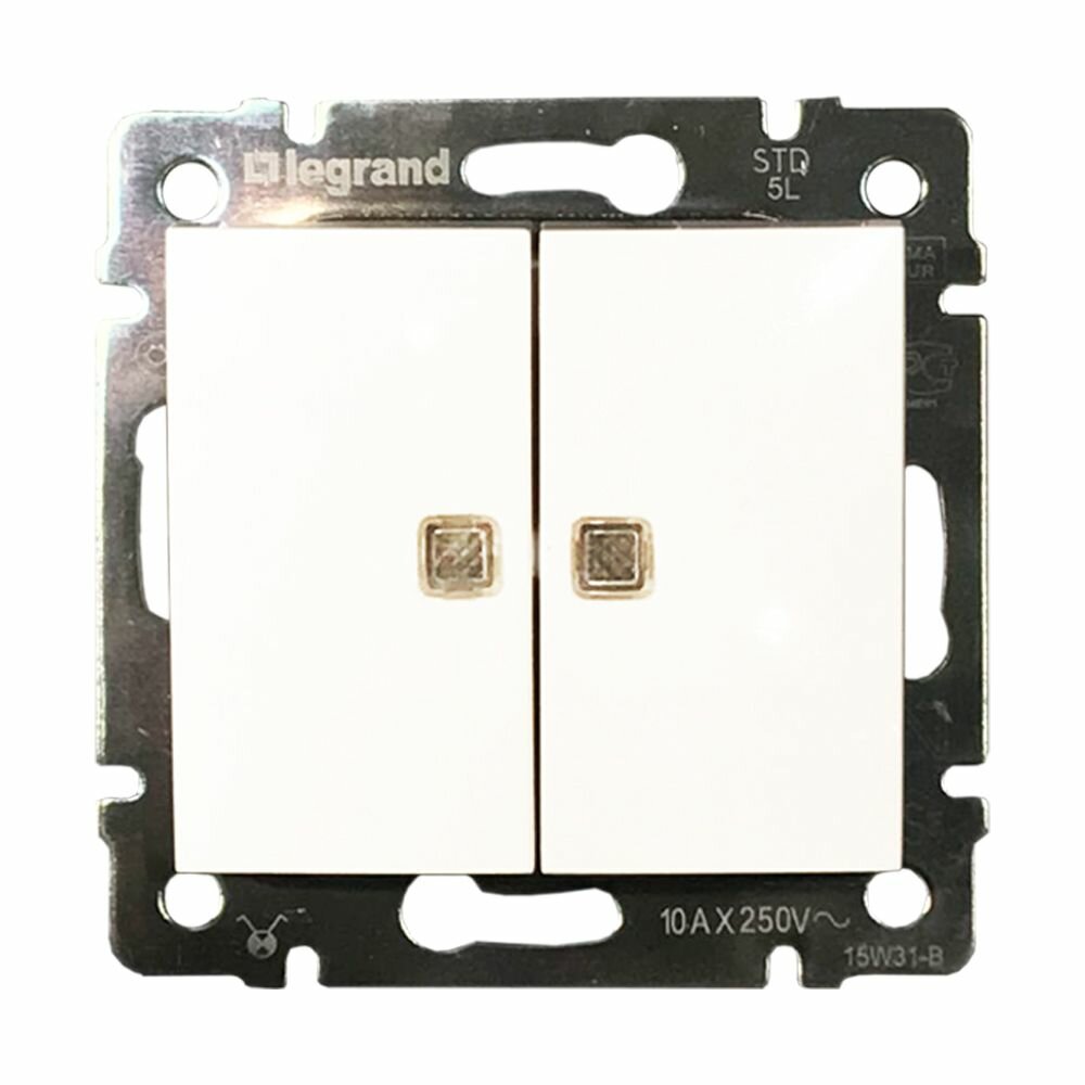 Legrand (Легранд) Переключатель двухклавишный с подсветкой белый, Valena 774212
