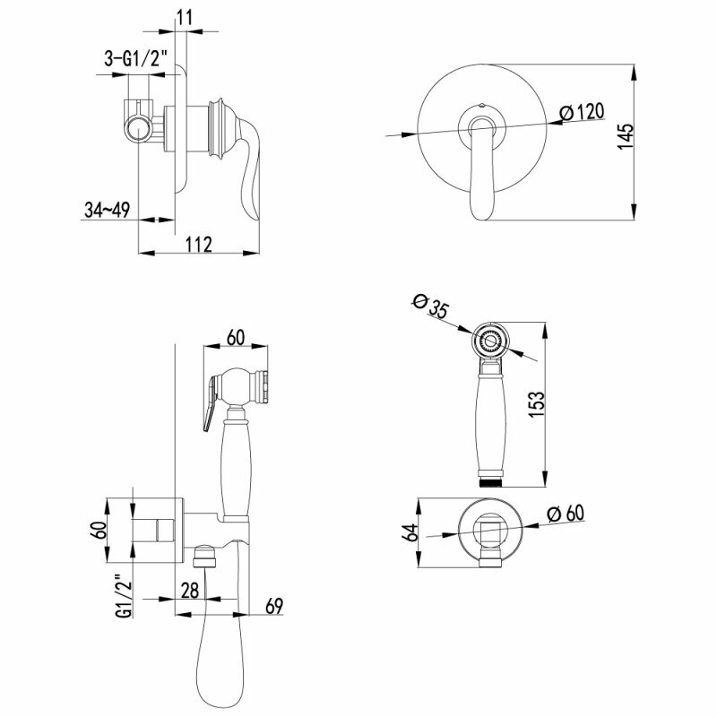 | Комплектация | корпус смесителя с керамическим картриджем (1) - 1 шт. / прокладка (2) - 1 шт. / декоративная металлическая накладка (3) - 1 шт. / металлическая рукоятка (4) - 1 шт. / винт (5) - 1 шт. / пластиковая заглушка (6) - 1 шт. / подключение для шланга с держателем для лейки (7) - 1 шт. / лейка гигиенического душа с нажимным механизмом (8) - 1 шт. / душевой шланг (9) - 1 шт. / ключ-шестигранник (10) - 1 шт. |