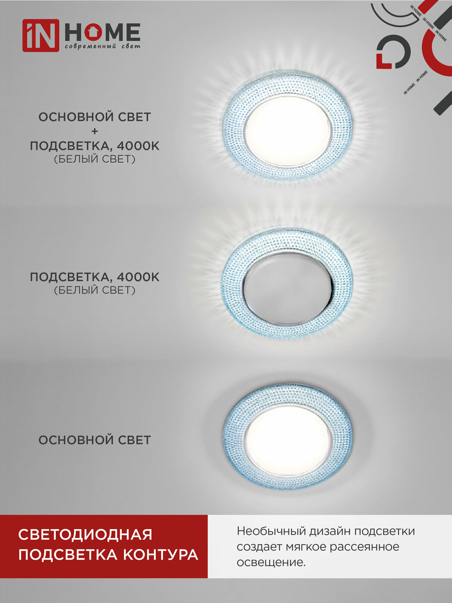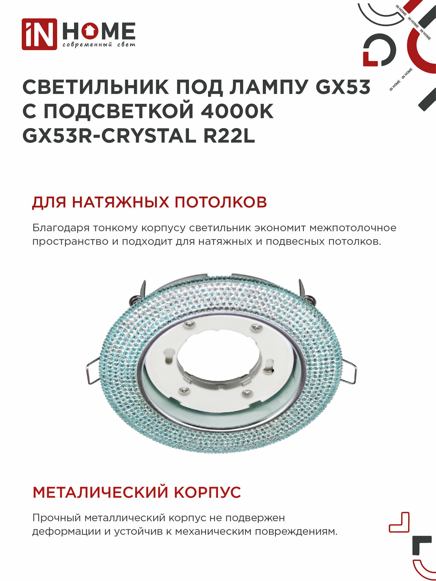 Точечные светильники In Home Светильник встраиваемый gx53r-r22l-crystal под лампу gx53 с подсветкой 230b голубой/хром in home