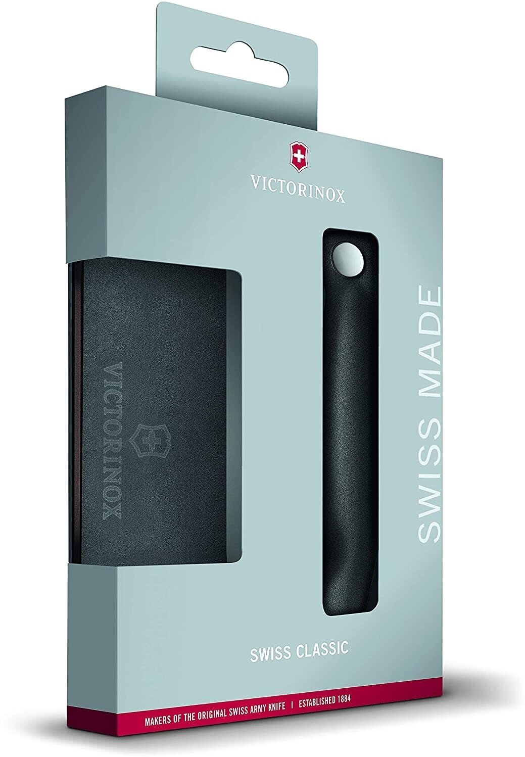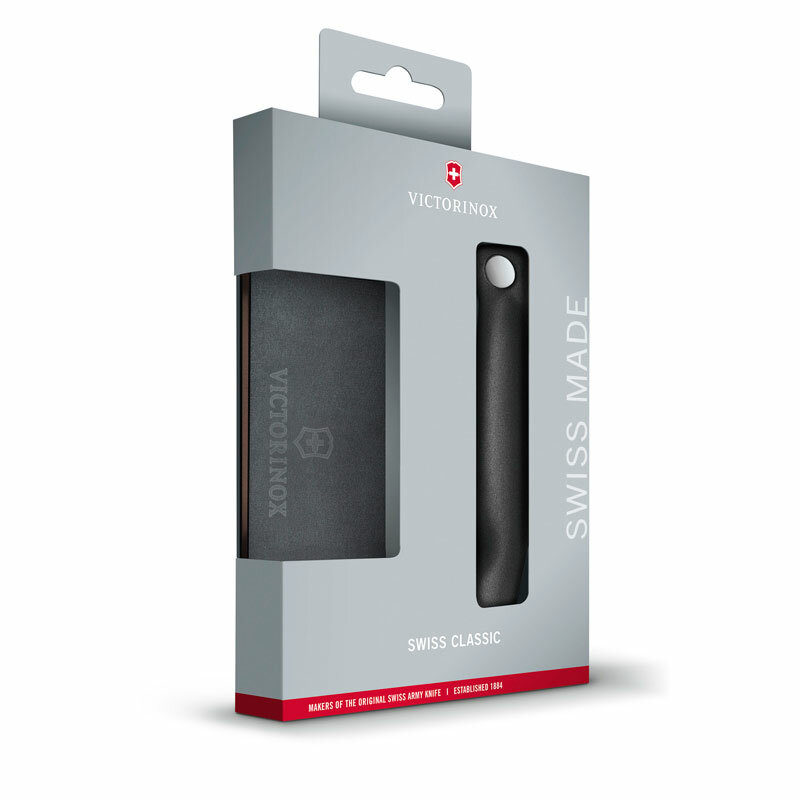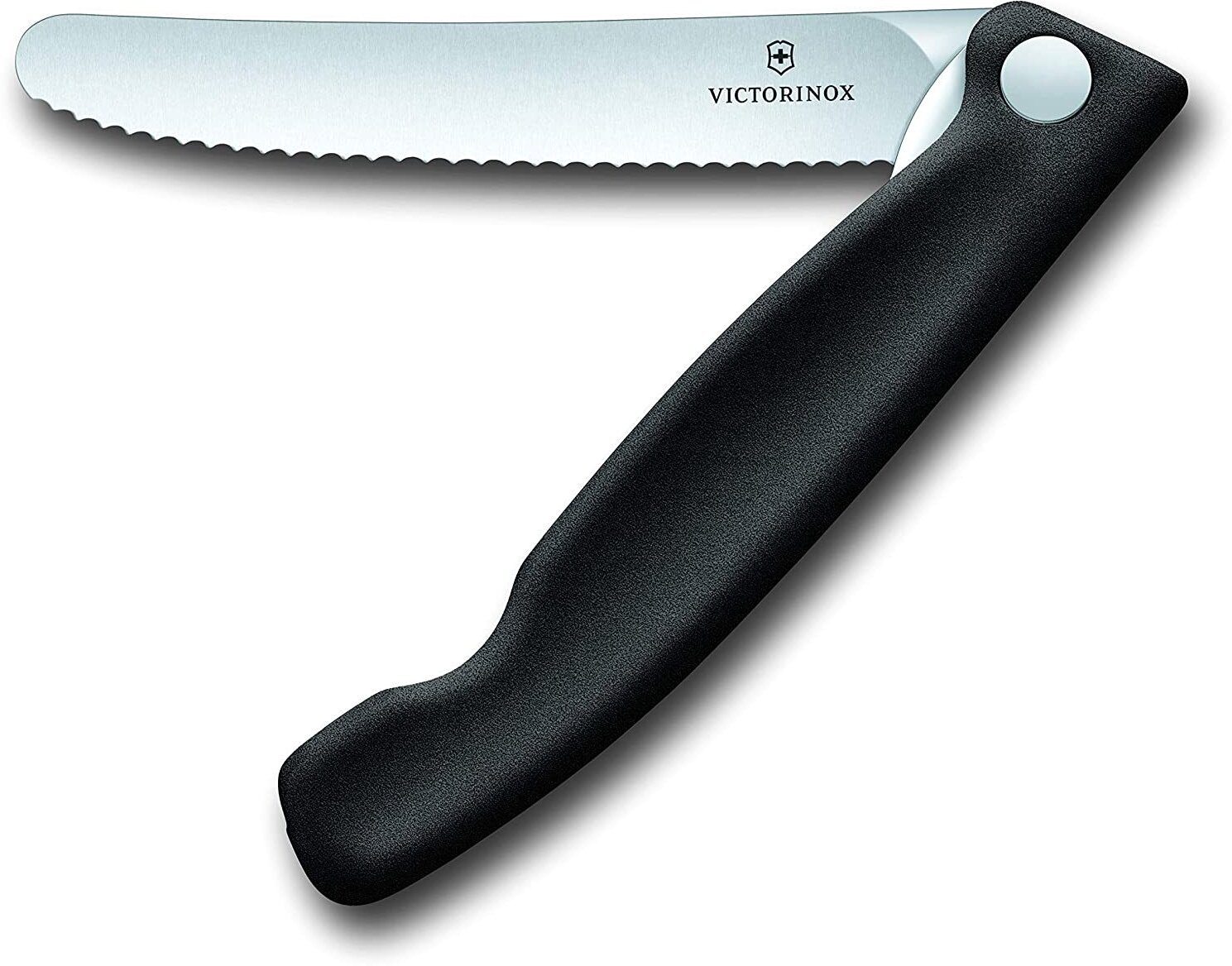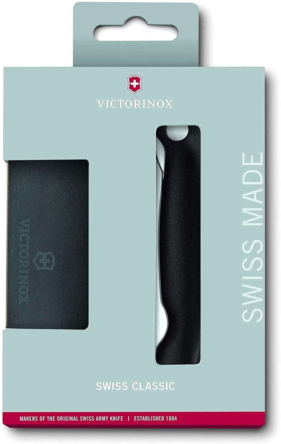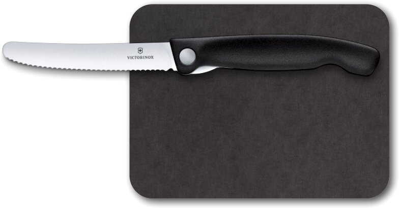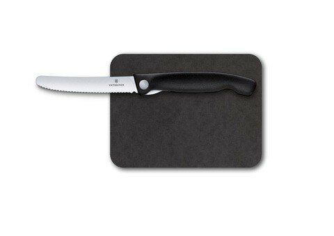 Купить Набор VICTORINOX Swiss Classic: складной нож для овощей 11 см с волнистой заточкой лезвия и разделочная доска, нержавеющая сталь / полипропилен / древесное волокно, черная рукоять (6.7191.F3)
