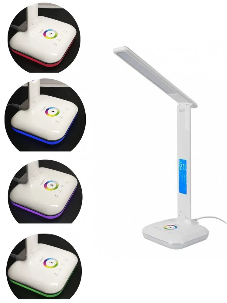 Светильник настольный 610 Лм, с дисплеем с часами, сенсорное включение, 3 цвета свечения, LED, 8 Вт, белый, абажур белый, GLTL-034