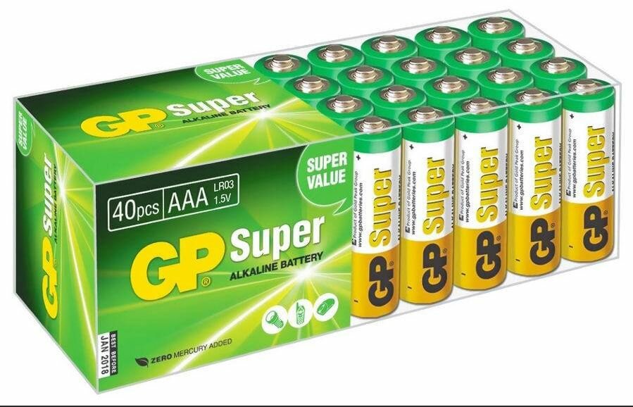 Батарейка алкалиновая GP Super, AAA, LR03-40BOX, 1.5В, набор 40 шт.