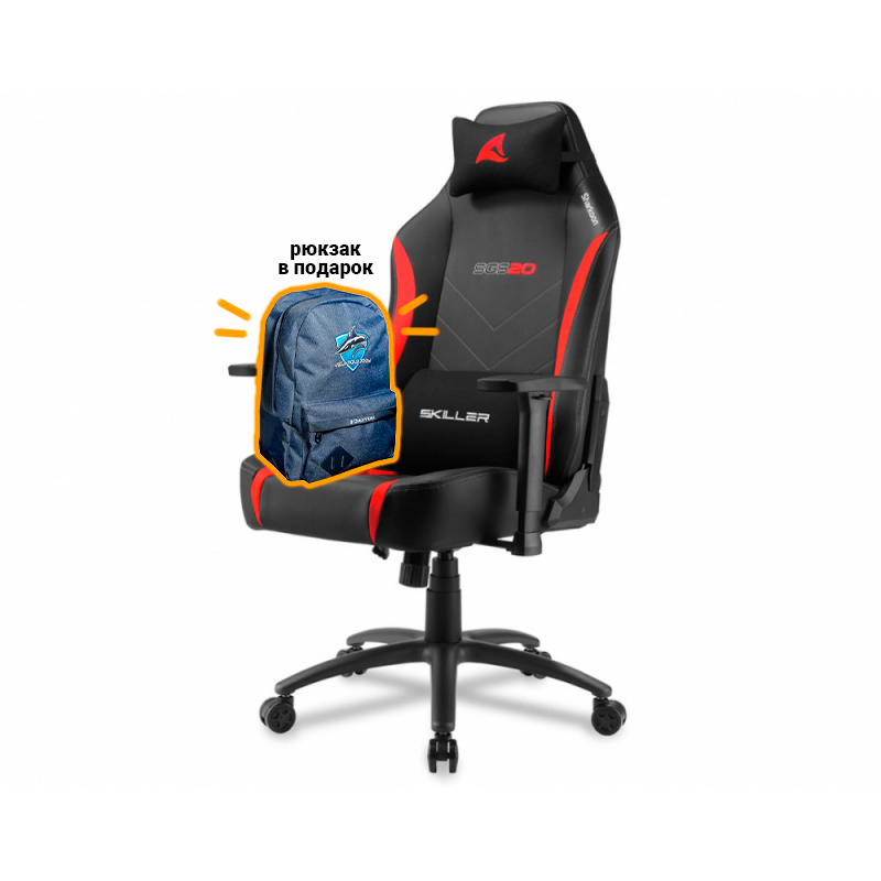 Кресло игровое SHARKOON SGS20, черный/красный/красный (529229)