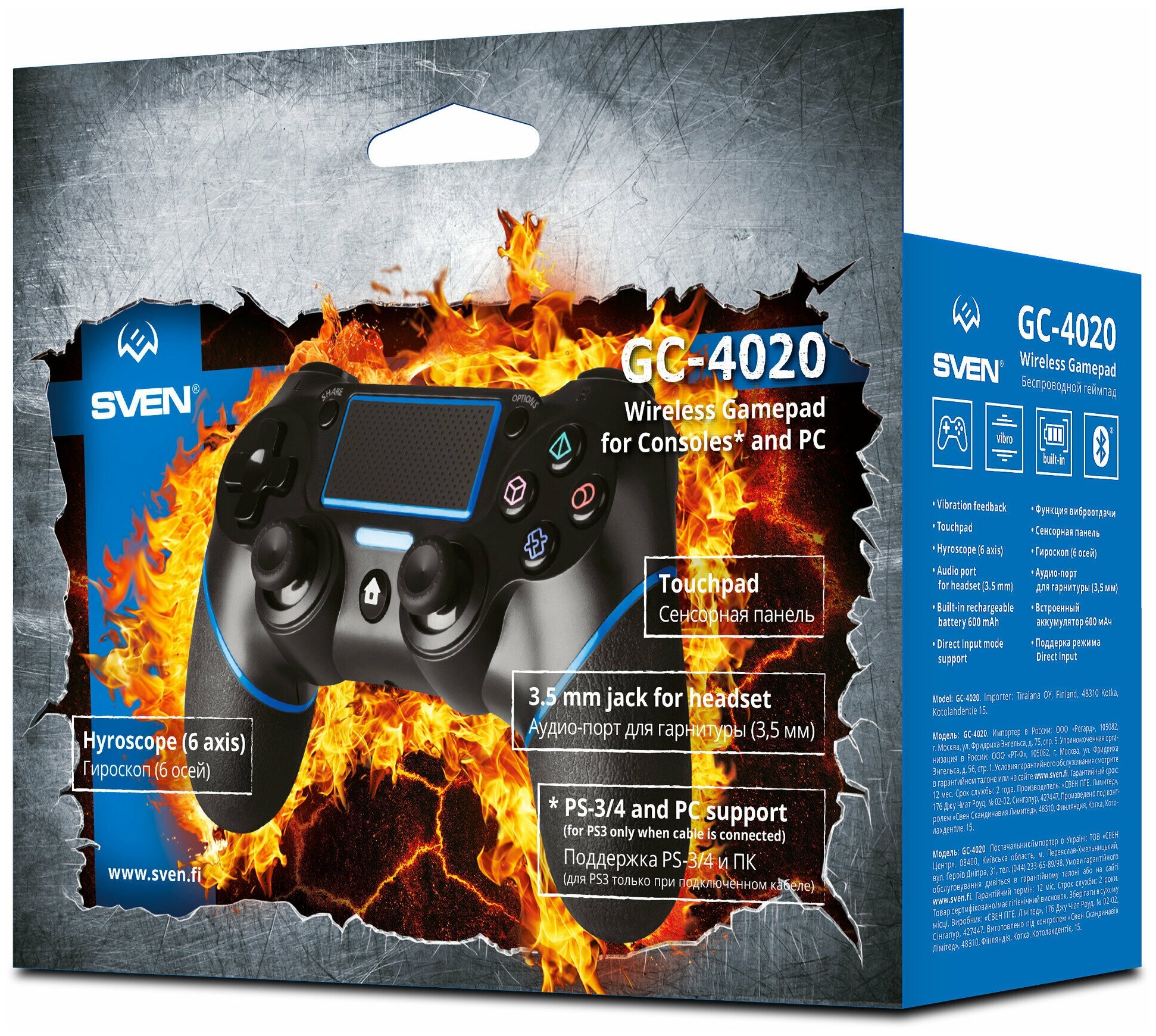 Sven GC-4020 (11 кл. 2 стика, D-pad, PS4/PC, Touchpad, 3.5mm jack)