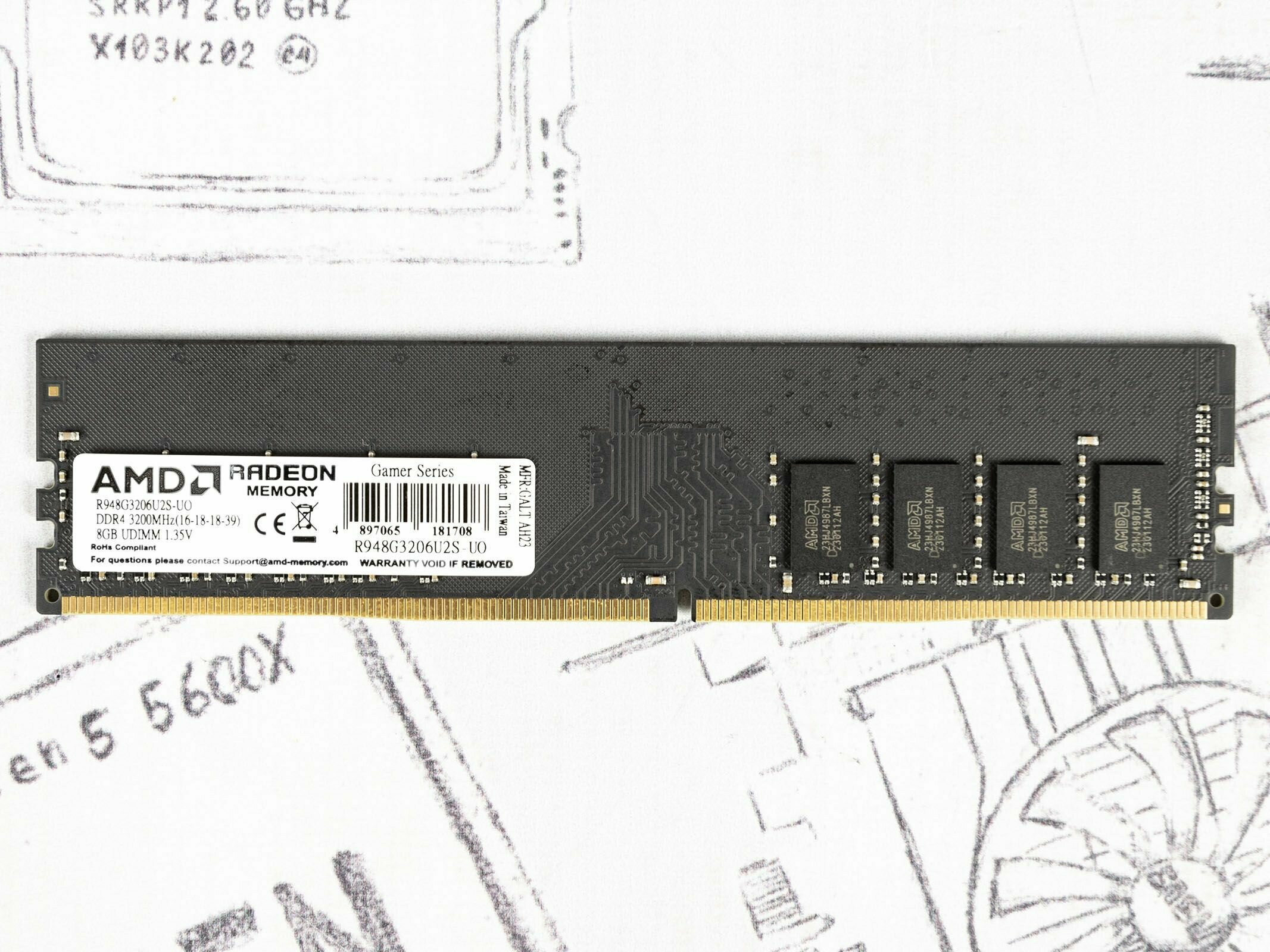 Модуль DIMM 8Gb (DDR4 3200MHz) *AMD* black R948G3206U2S-UO интересное: