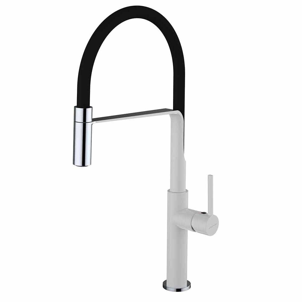 Смеситель для кухни Clever CHEF SLIM BLANCO CROMO, съемный излив, белый/хром покрытие