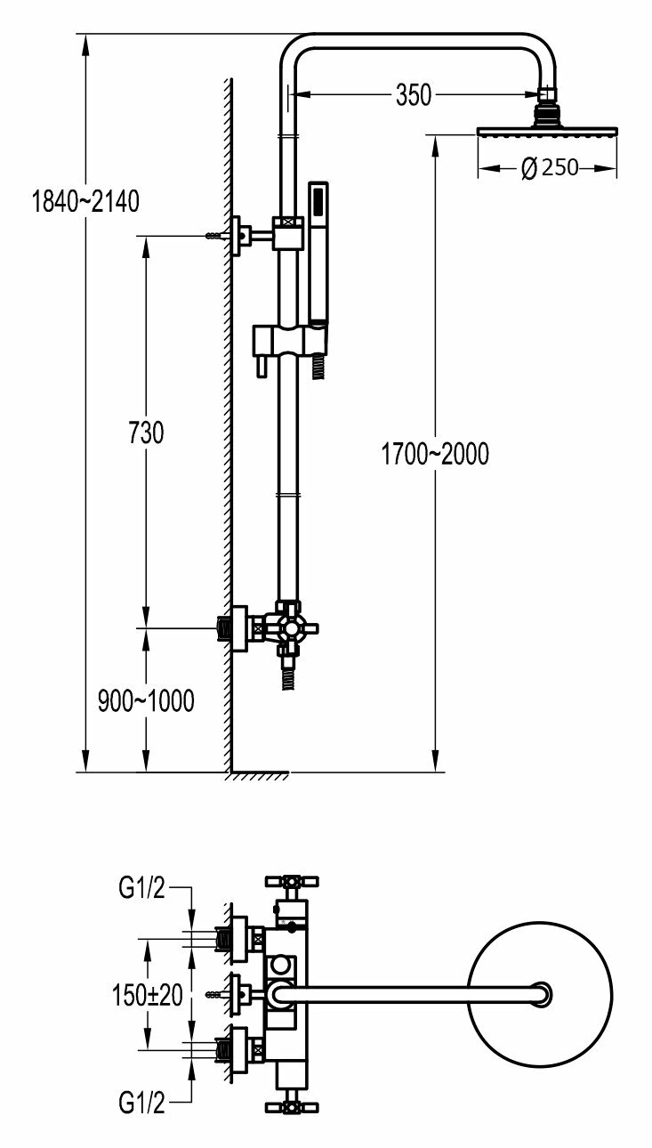 | Дополнительная информация | высота стойки для душа: 1140 мм; диаметр верхнего душа: 188 мм |