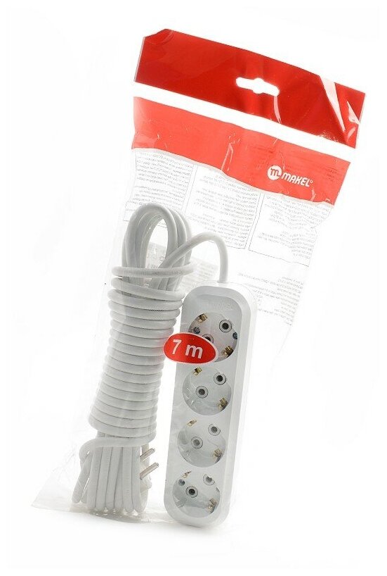 Сетевой удлинитель с заземлением MAKEL 4*7 MGP 157 на 7 метров 4 розетки 3,5 кВт 16А белый
