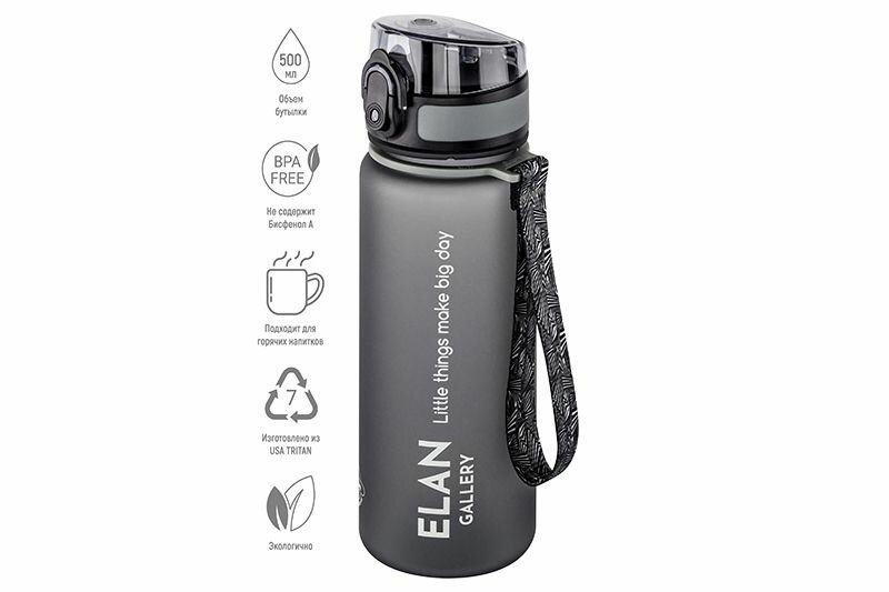 Бутылка для воды 500 мл 6,5х6,5х23 см Elan Gallery Style Matte, серая