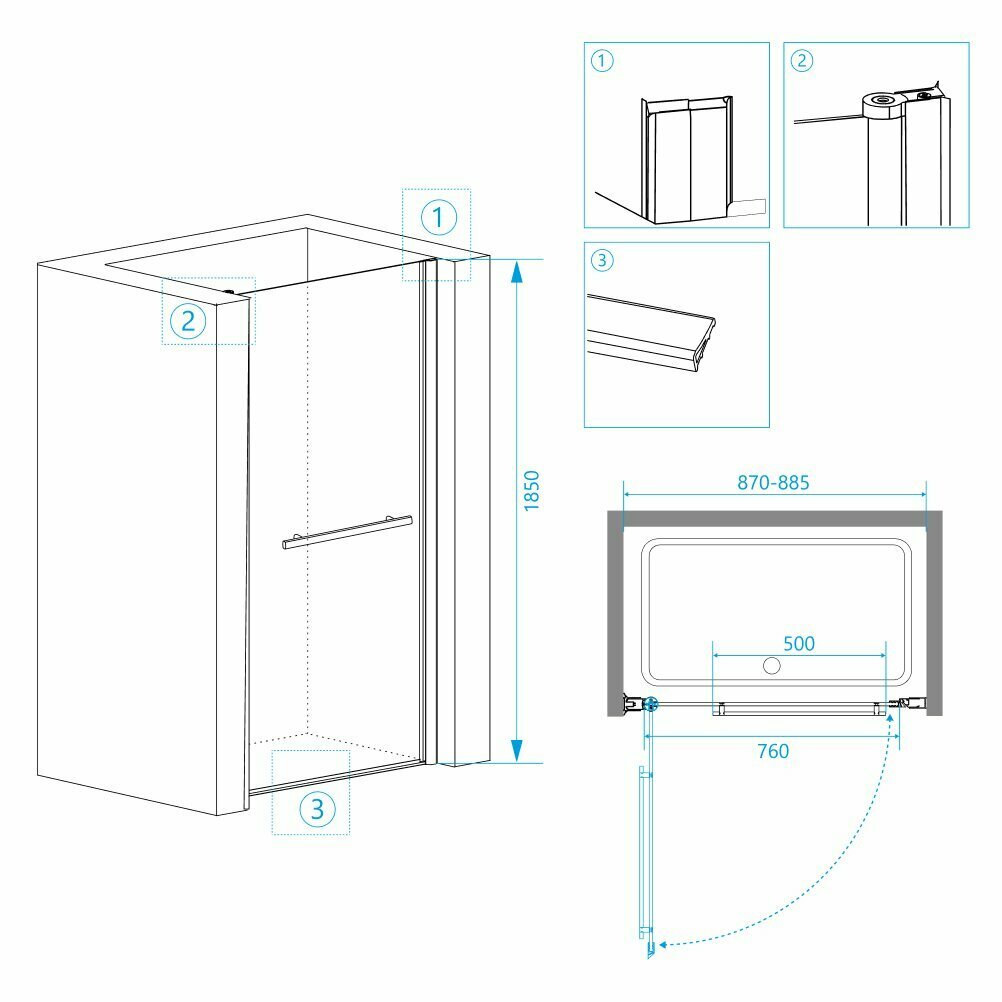 Душевая дверь RGW 90х185 см PA-03 Хром, Прозрачное, 6 мм 870-885 (41080309-11)