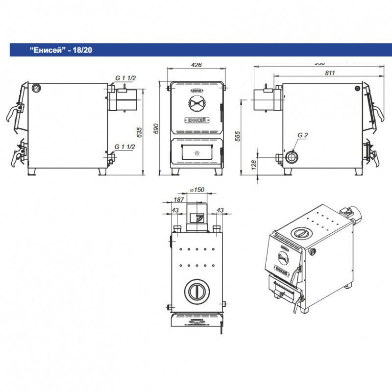 | Диаметр дымохода | 150 мм |