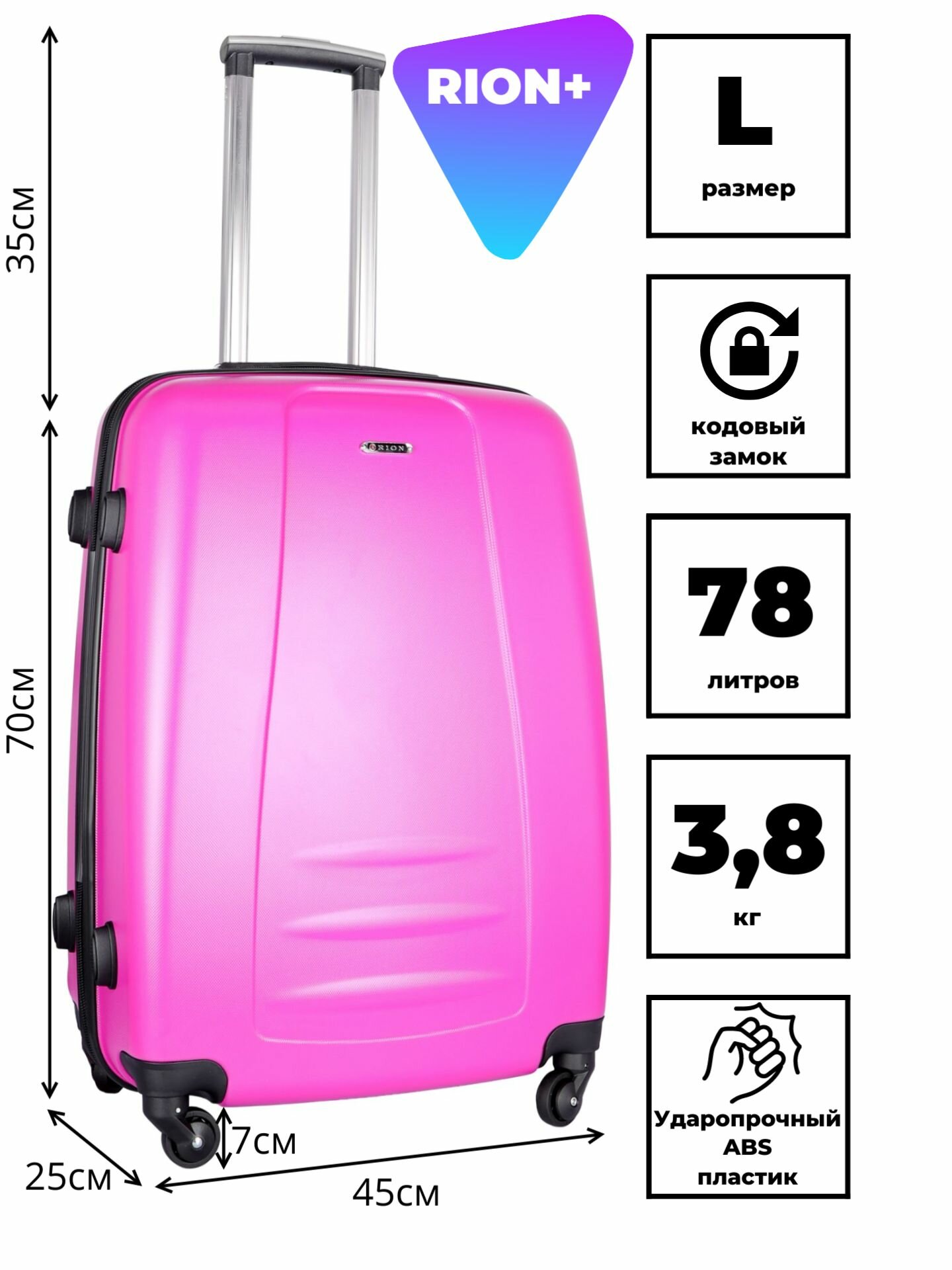 Ниже Вы можете прочитать отзывы на Чемодан Рион+ (RION+) R418, Пластик, L (70 см), 78 литра, 4 колеса, усиленный пластик, розовый, ознакомится с подробными характеристиками, посмотреть интересные обзоры и фотографии на Чемодан Рион+ (RION+) R418, Пластик, L (70 см), 78 литра, 4 колеса, усиленный пластик, розовый.