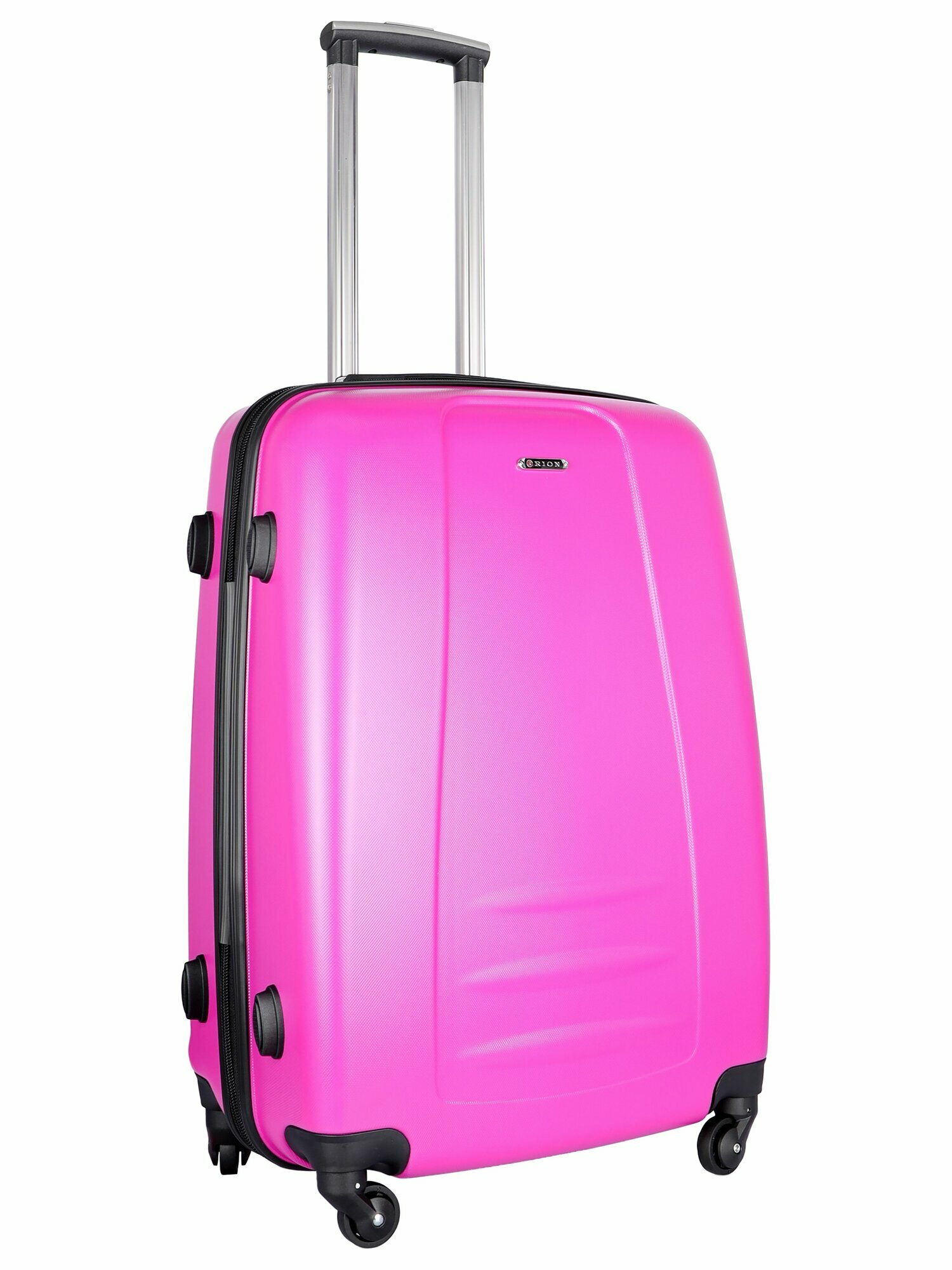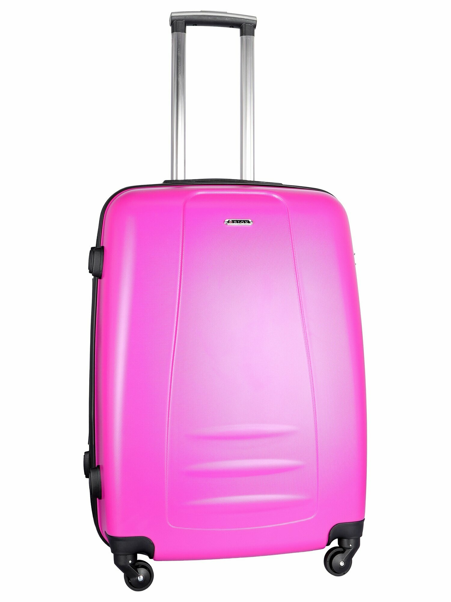 Чемодан Рион+ (RION+) R416, Пластик, 65 см, 60 литров, 4 колеса, M (56-70 см), усиленный толстый пластик, розовый