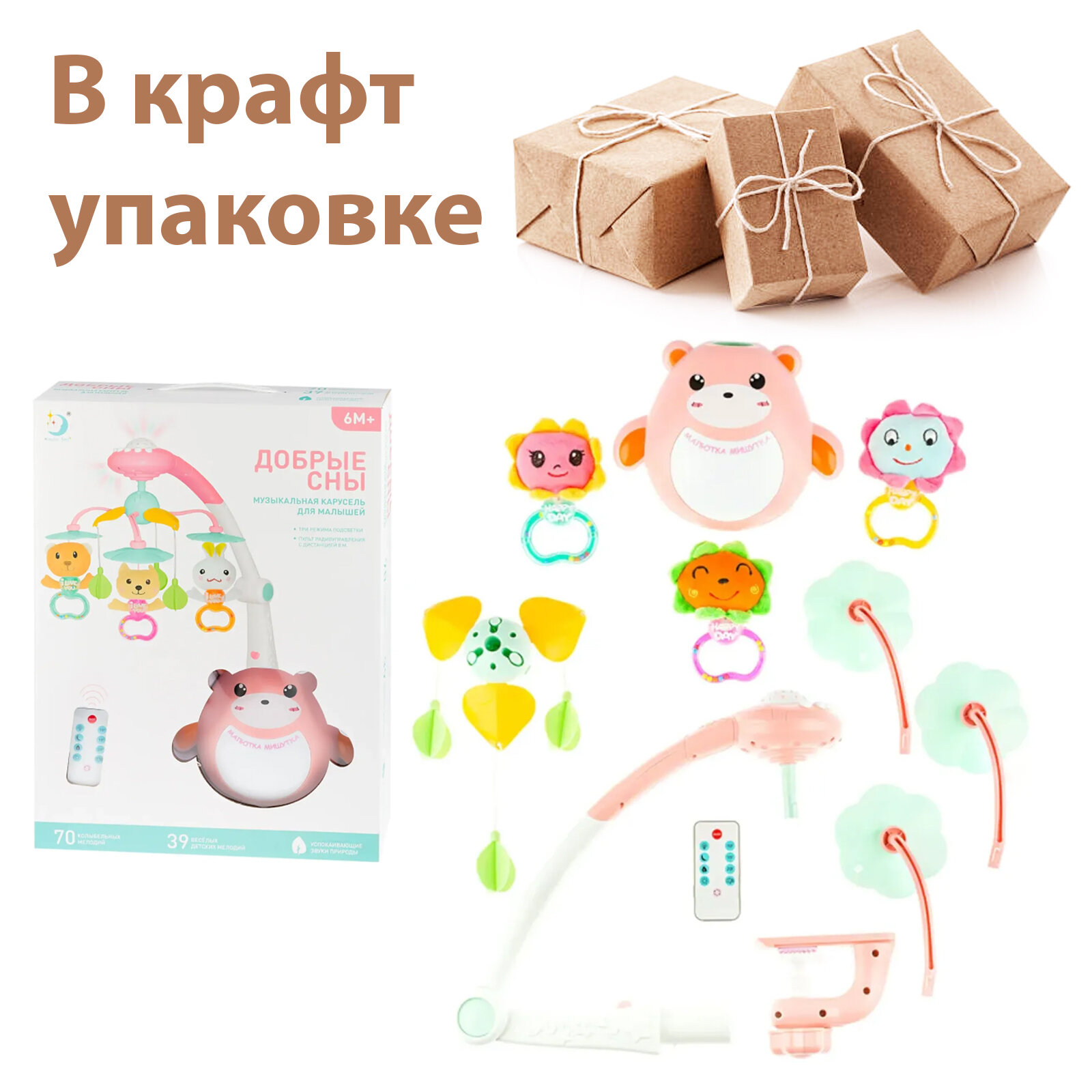 Мобиль Каруселька на кроватку с пультом управления / 70 колыбельных мелодий, 39 веселых мелодий