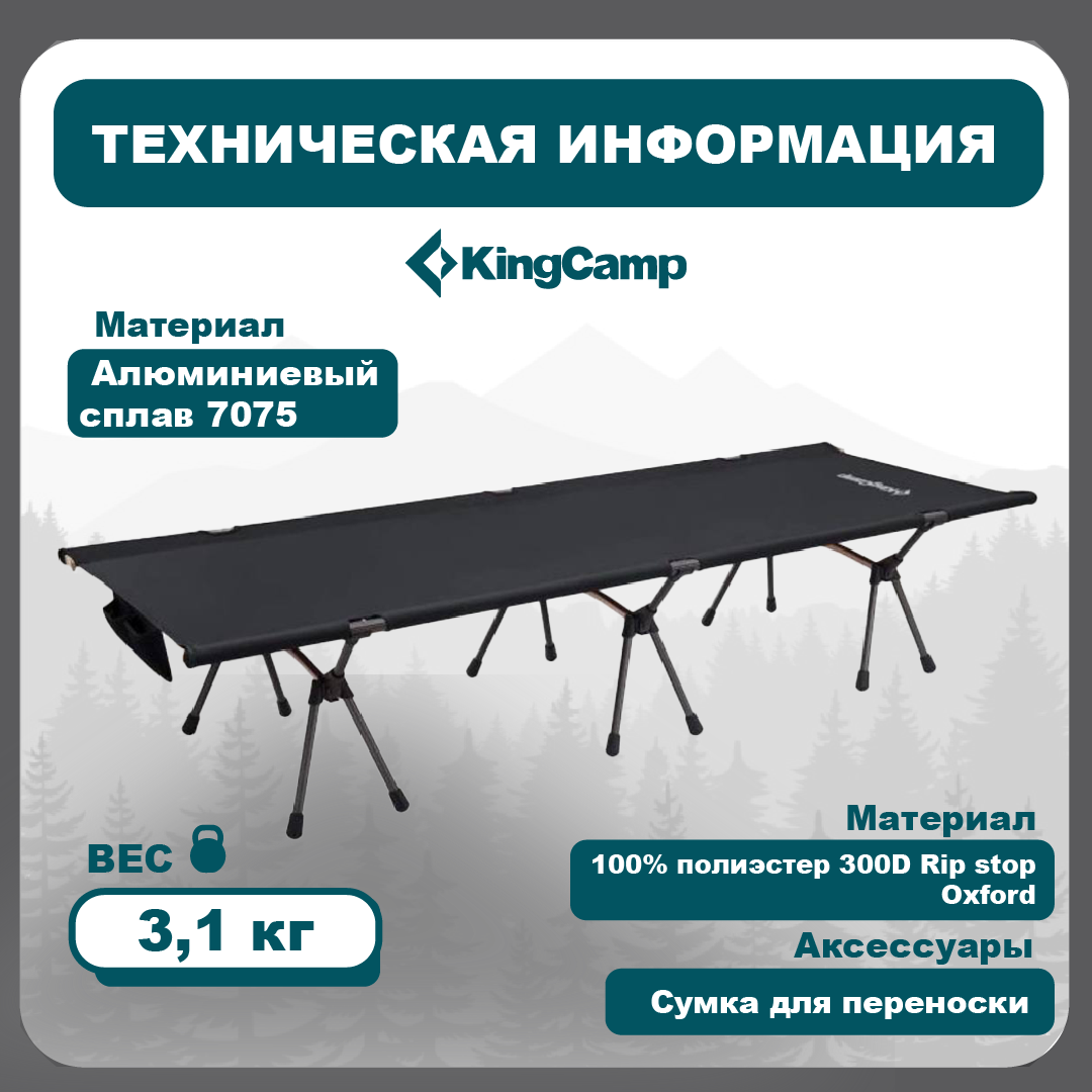 Складная кемпинговая кровать King Camp 2027 Ginkgo Cot алюминий, 190х65х41 см, черный