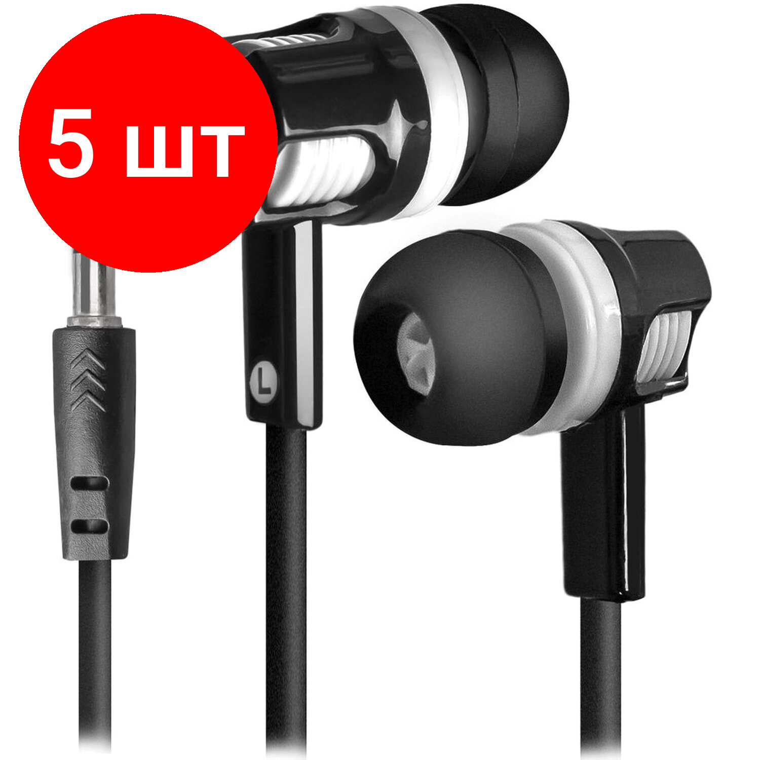 Купить Комплект 5 шт, Наушники DEFENDER Basic 609, проводные, 1.1 м, стерео, вкладыши, черные, 63609