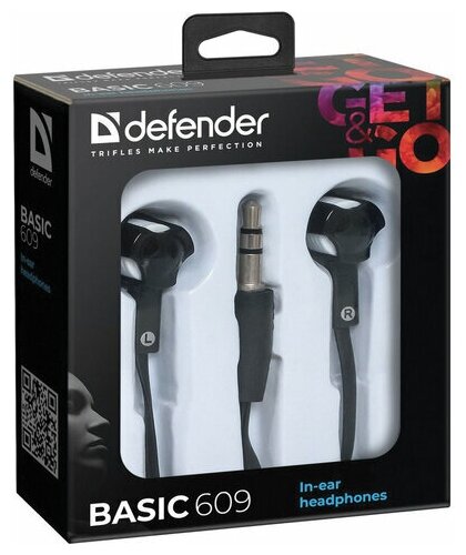 Наушники-вкладыши Defender Basic 609, 1,1м, черный, белый ( Артикул 260510 )