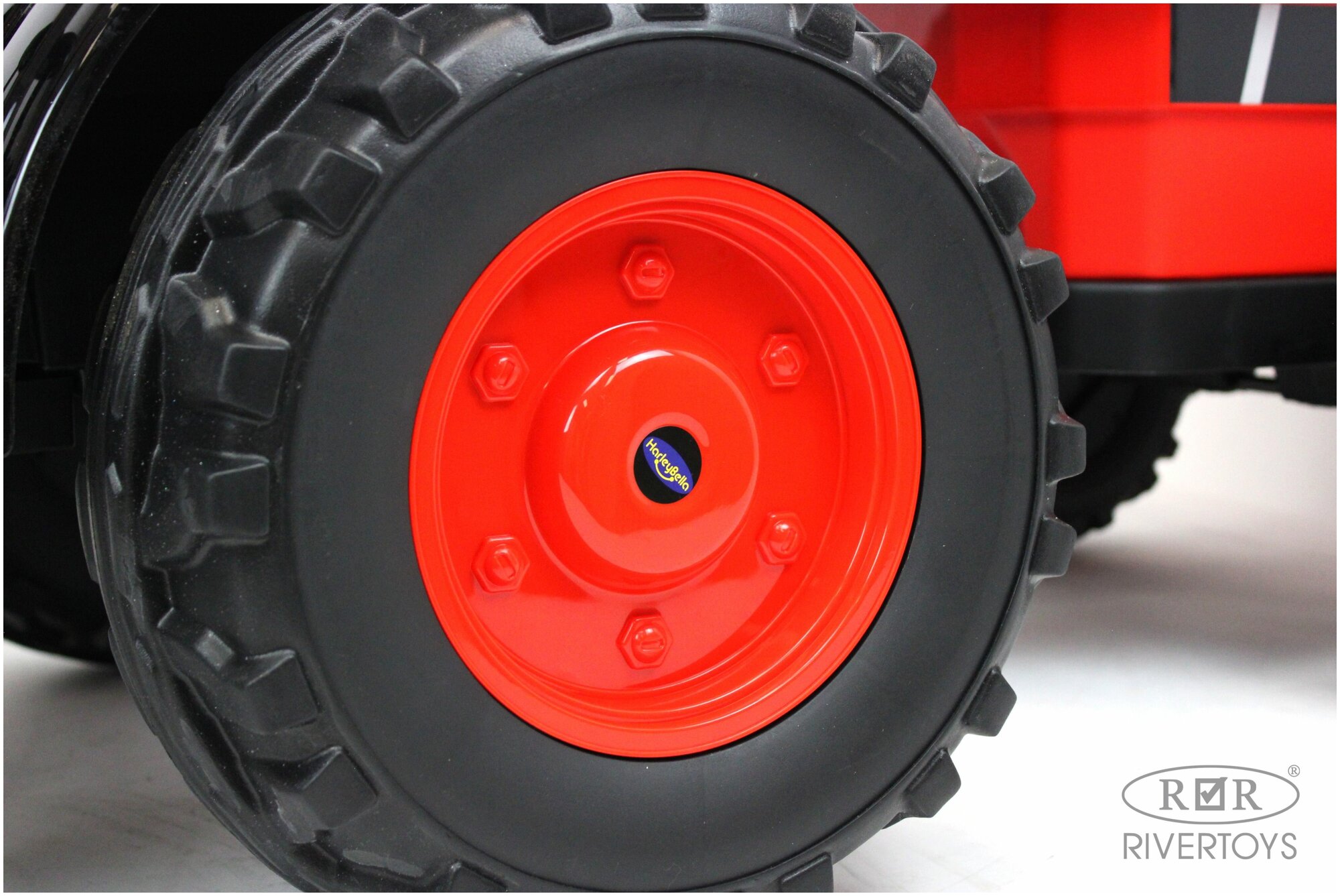 Купить Детский электромобиль RiverToys трактор погрузчик с прицепом красный HL395