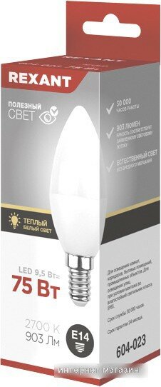 Лампа светодиодная Rexant 604-023 свеча (CN) 9,5 Вт E14 903 лм 2700 K теплый свет интересное: