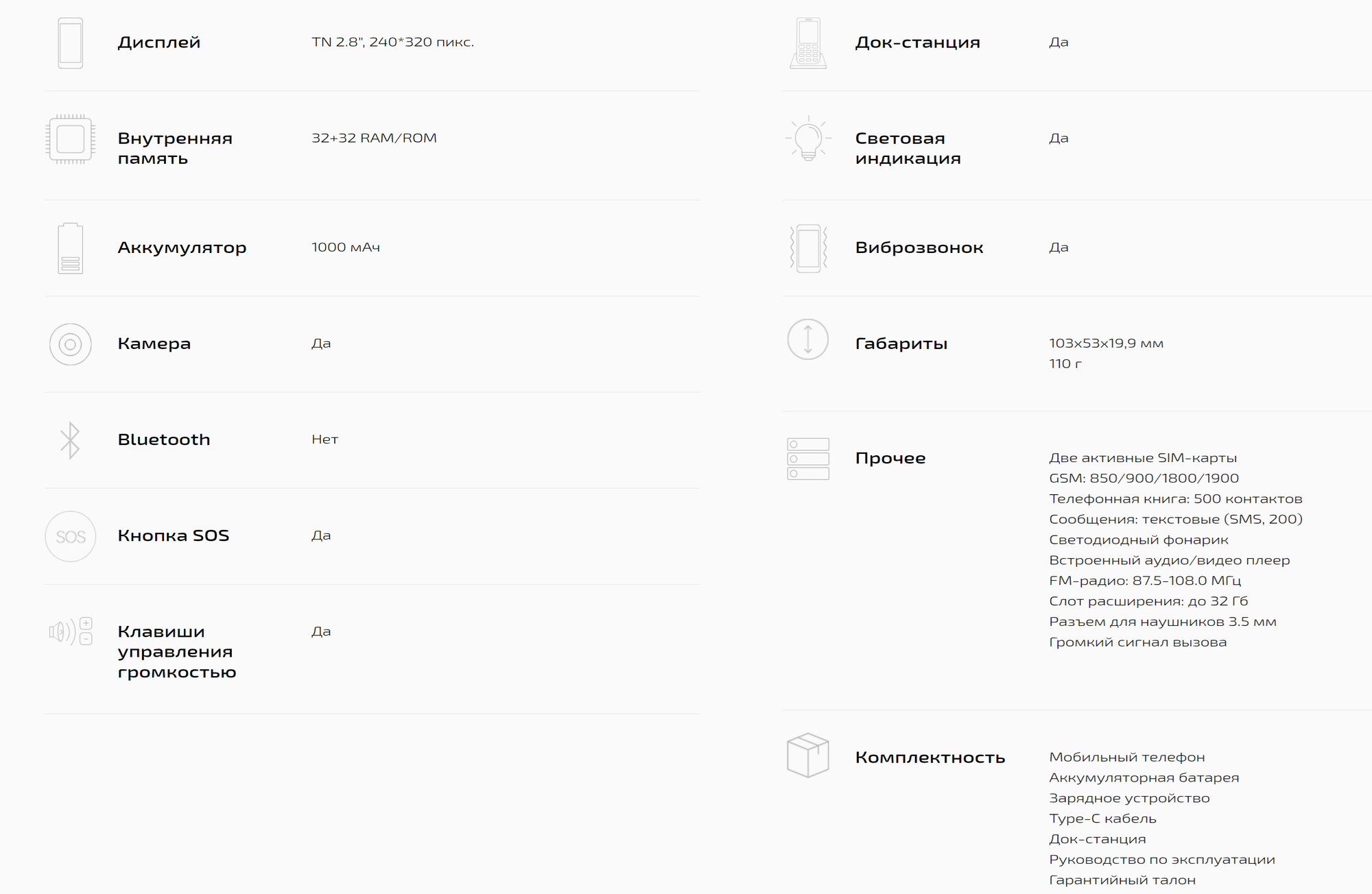 | Плюсы: | Кнопочный телефон сделан качественно, красивый цвет, со всем необходимым комплектом дополнительных опций, большие кнопки, имеется док станция. |