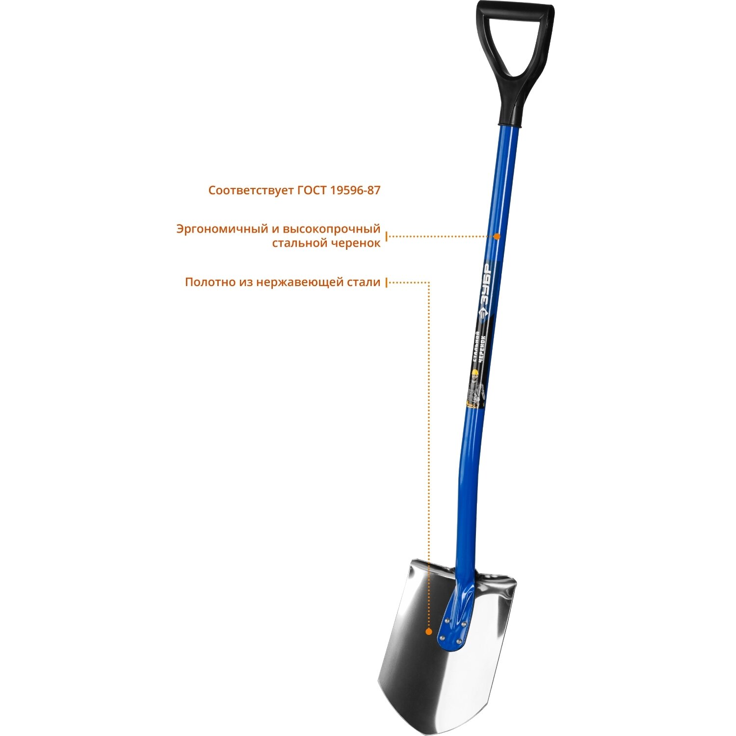 Штыковая лопата ЗУБР Артель-НС из нержавеющей стали, эргономичный стальной черенок З 4-39406