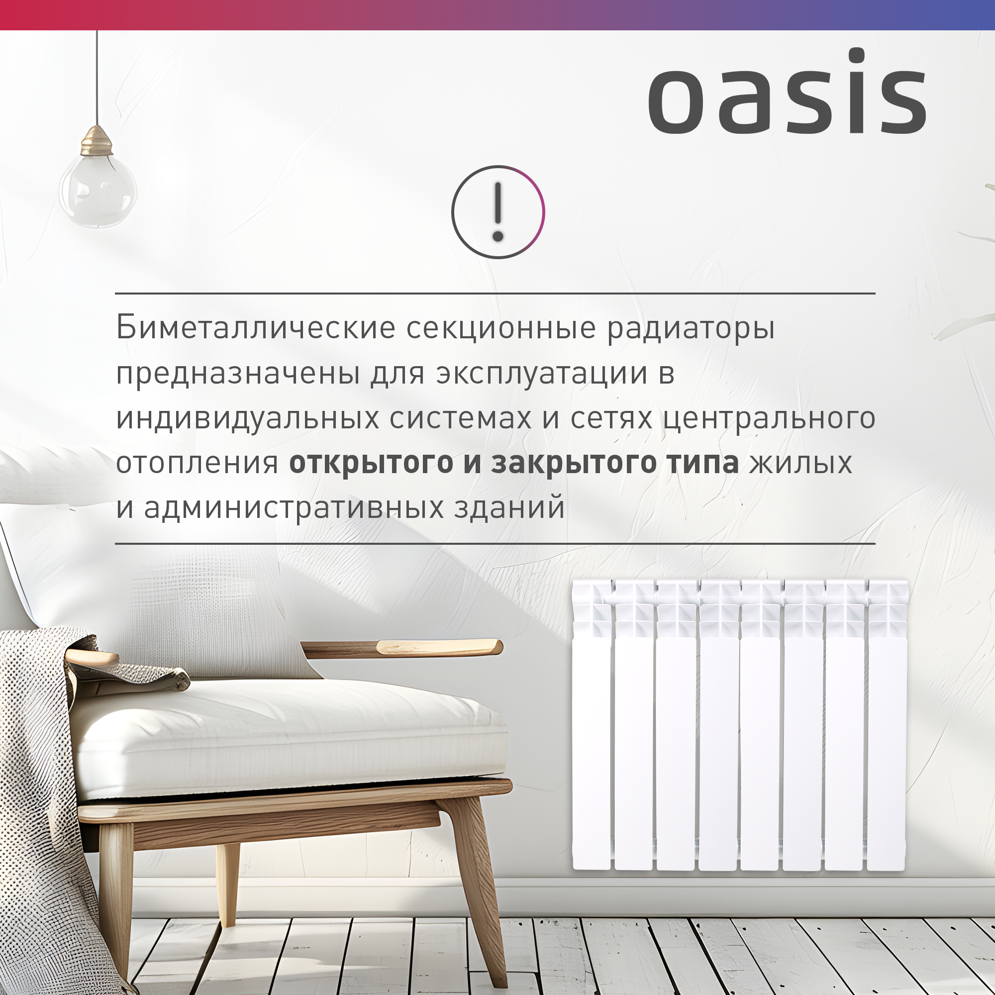 Биметаллический радиатор Oasis ECO 500/80 8 секций, 1216 Вт, Россия