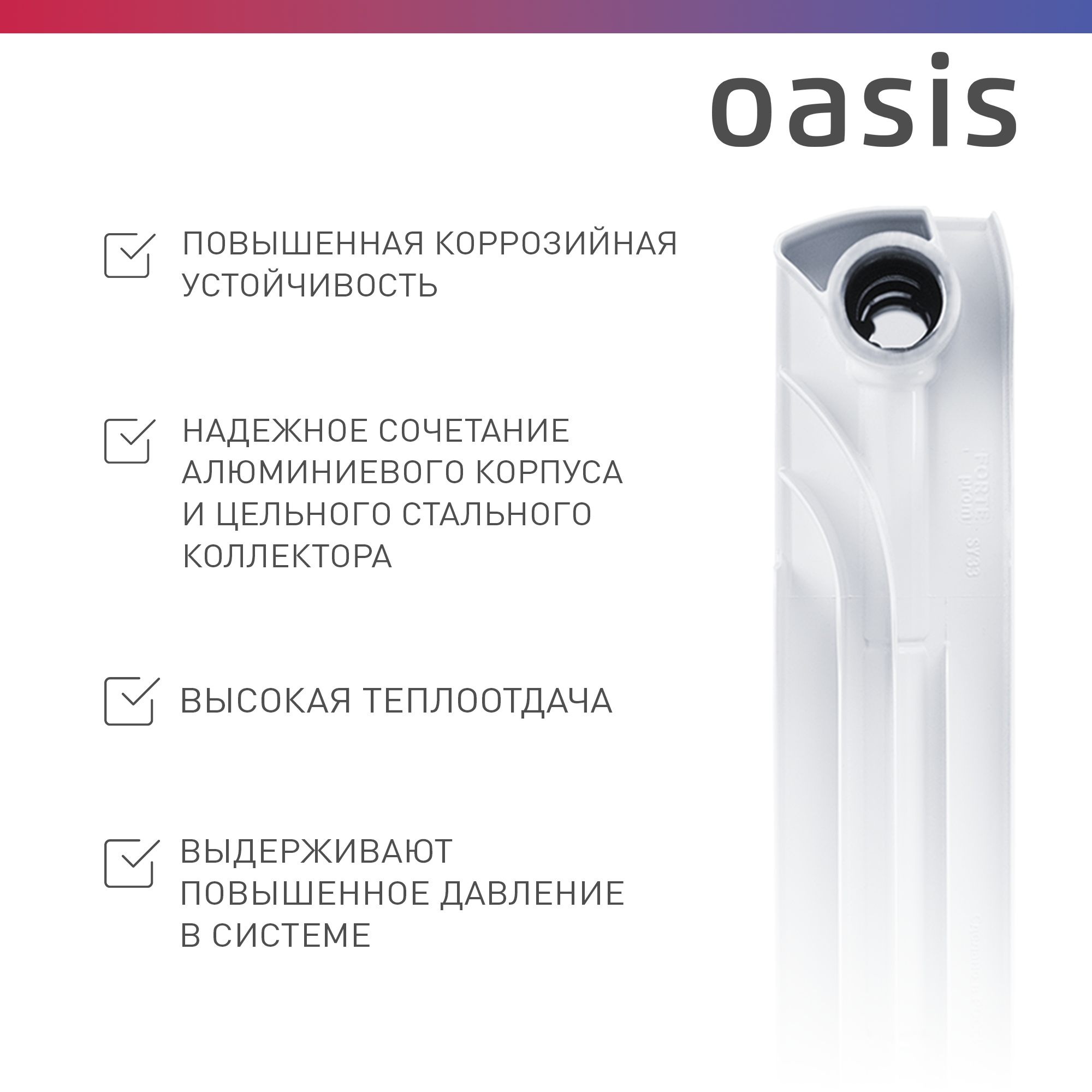 Биметаллический радиатор Oasis ECO 500/80 9 секций, 1368 Вт, Россия