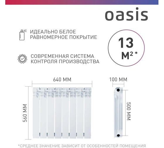 Биметаллический радиатор Oasis ECO 500/80 7 секций, 1064 Вт, Россия