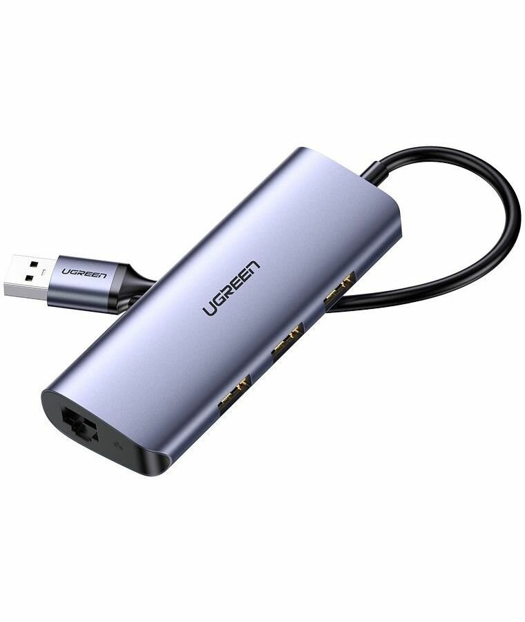Купить Мульти Хаб UGREEN CM252 (60719) USB-A to 3×USB 3.0+RJ45+Micro-USB Multifunction Adapter серый