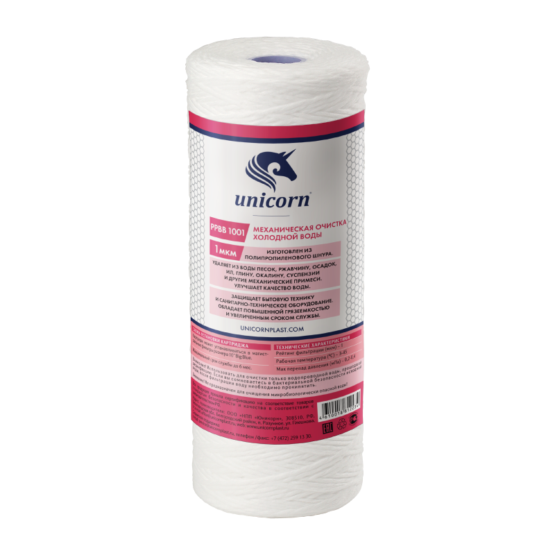 Картридж механический из полипропиленового шнура 10'' BB 1мкм UNICORN (РР BB 1001)