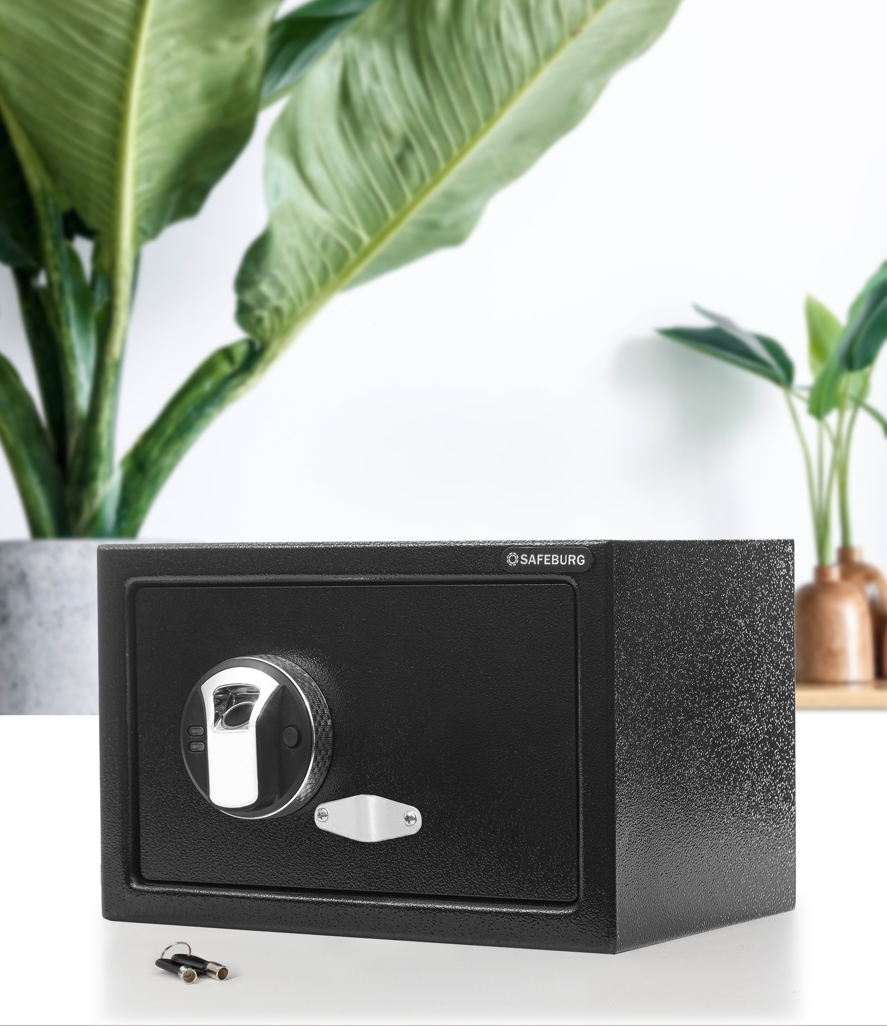 Сейф мебельный SAFEBURG SB-200F BLACK для денег и документов, для дома и офиса, биометрический замок (сканер отпечатка пальца)